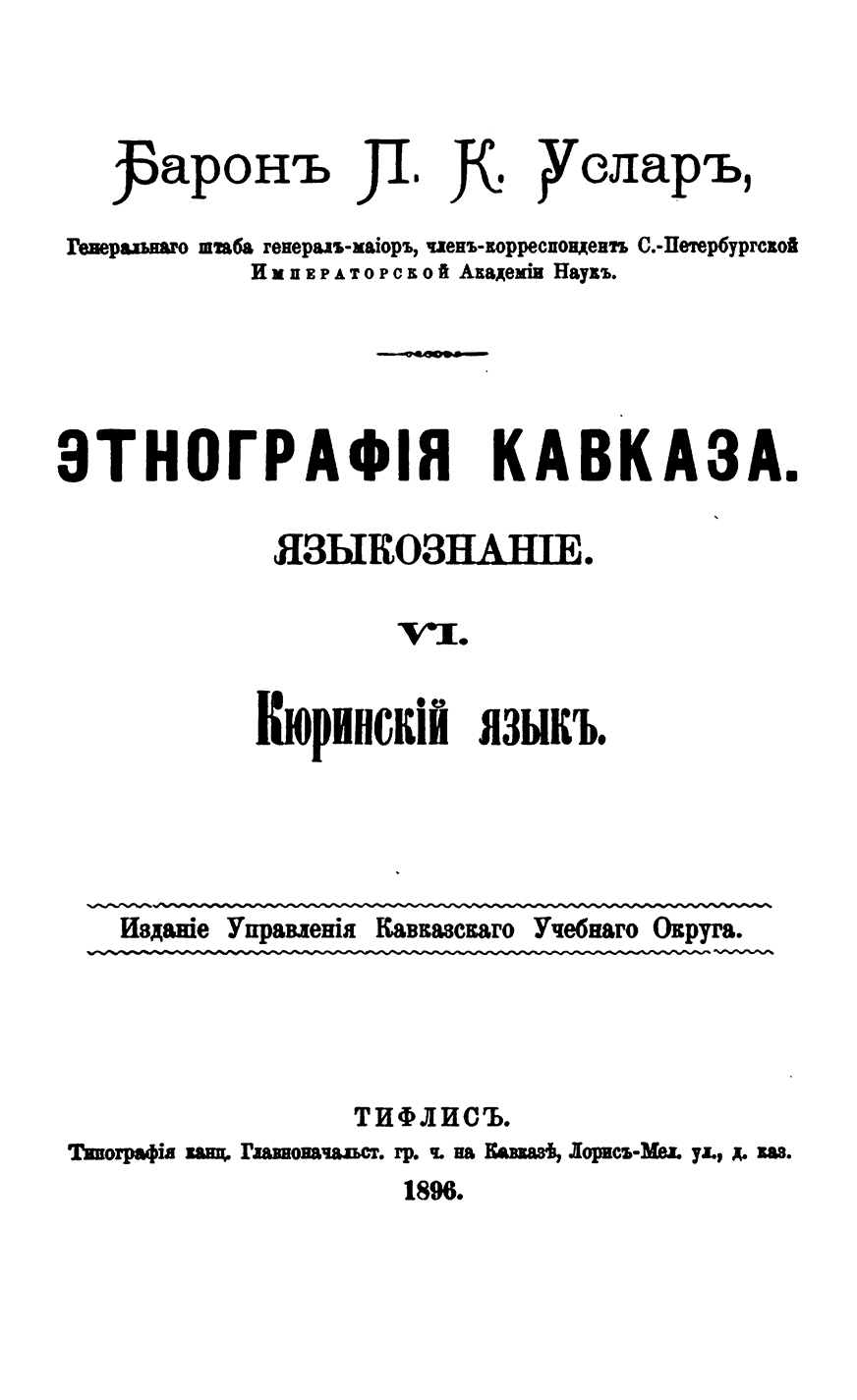 Этнографiя Кавказа. Языкознанiе. VI. Кюринскiй языкъ