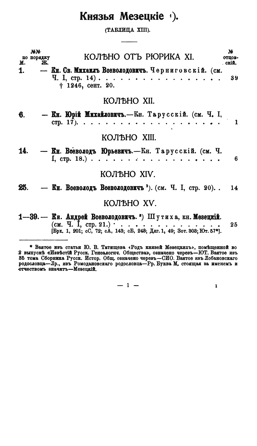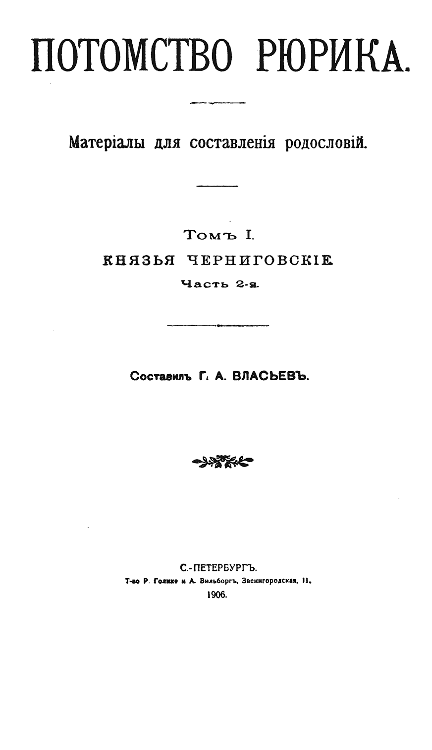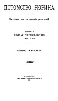 Потомство Рюрика. Материалы для составления родословий. Том I. Князья Черниговские. Часть 2-я