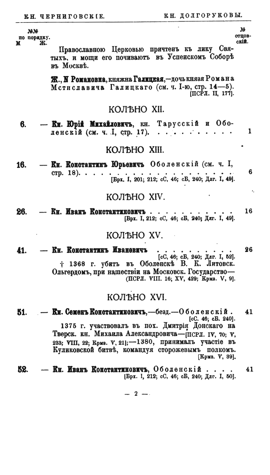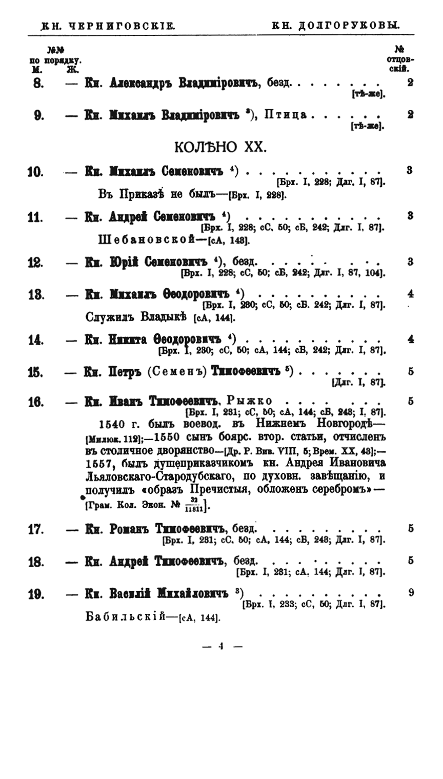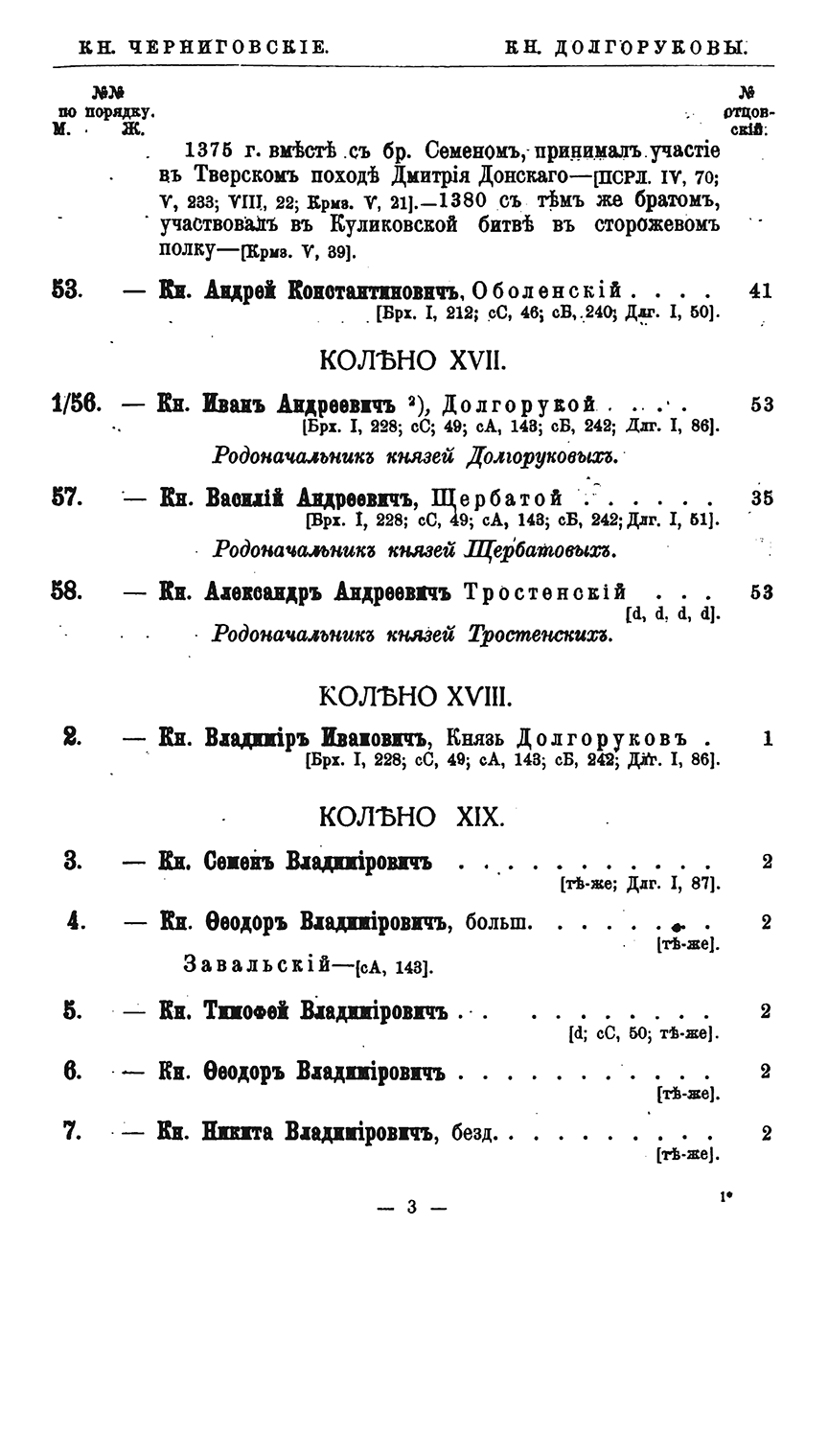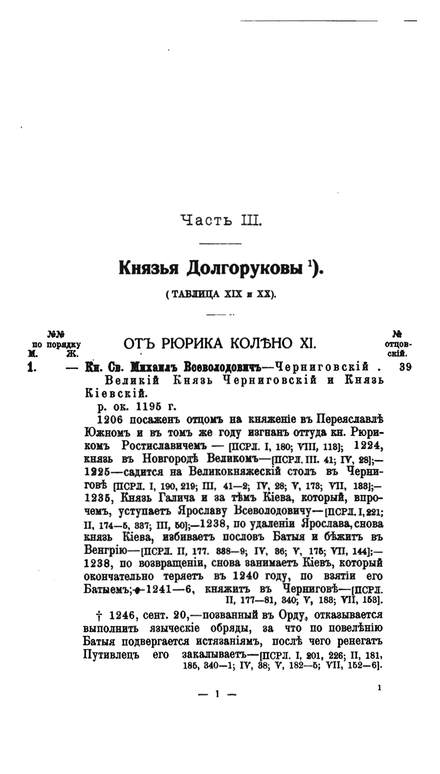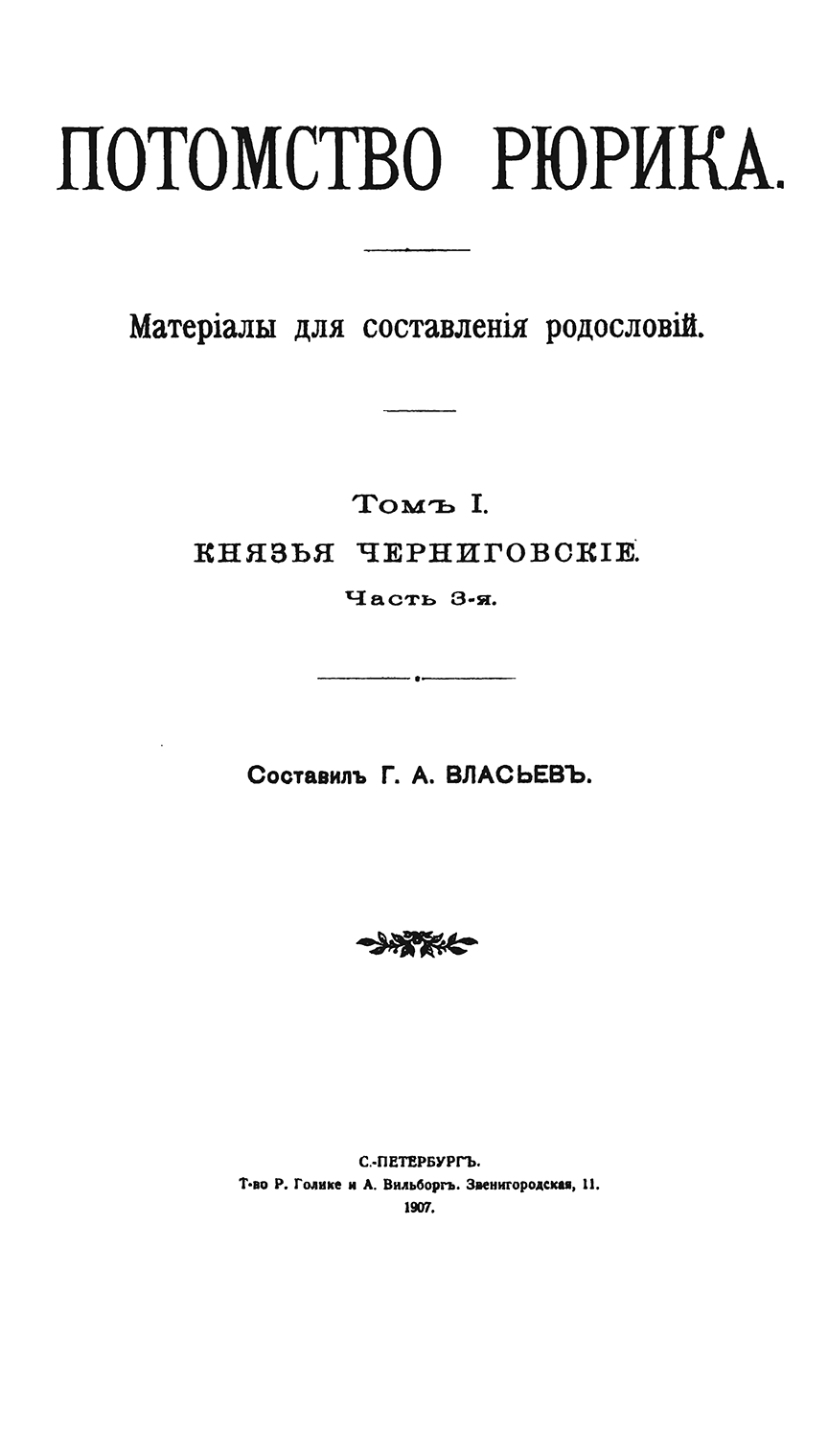 Потомство Рюрика. Материалы для составления родословий. Том I. Князья Черниговские. Часть 3-я