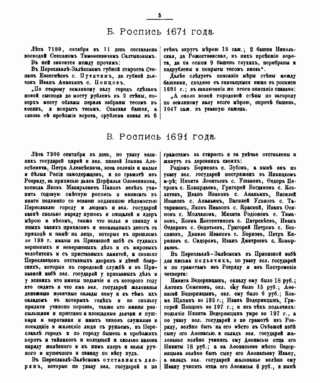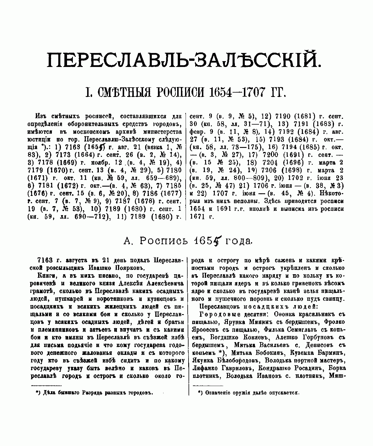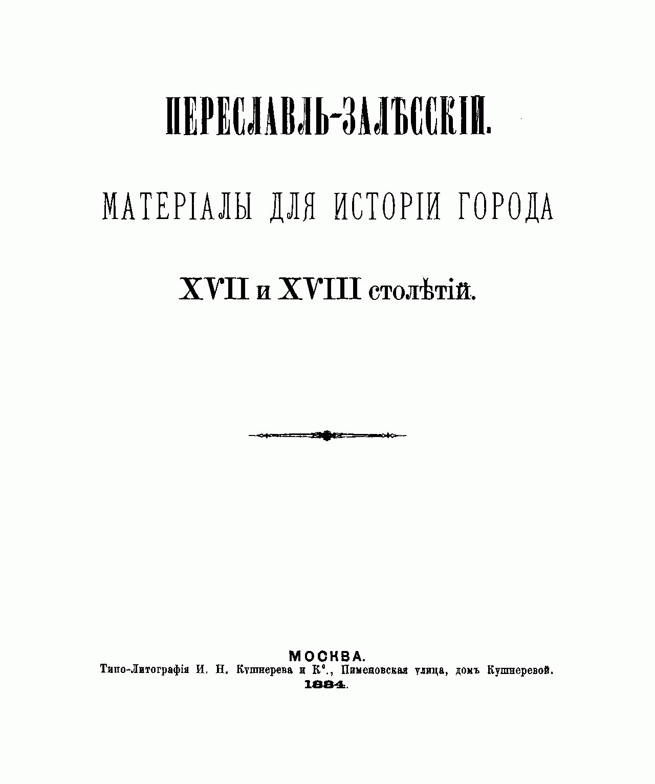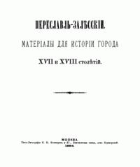 Переславль-Залѣсский. Матерiалы для исторiи города XVII и XVIII столѣтiй