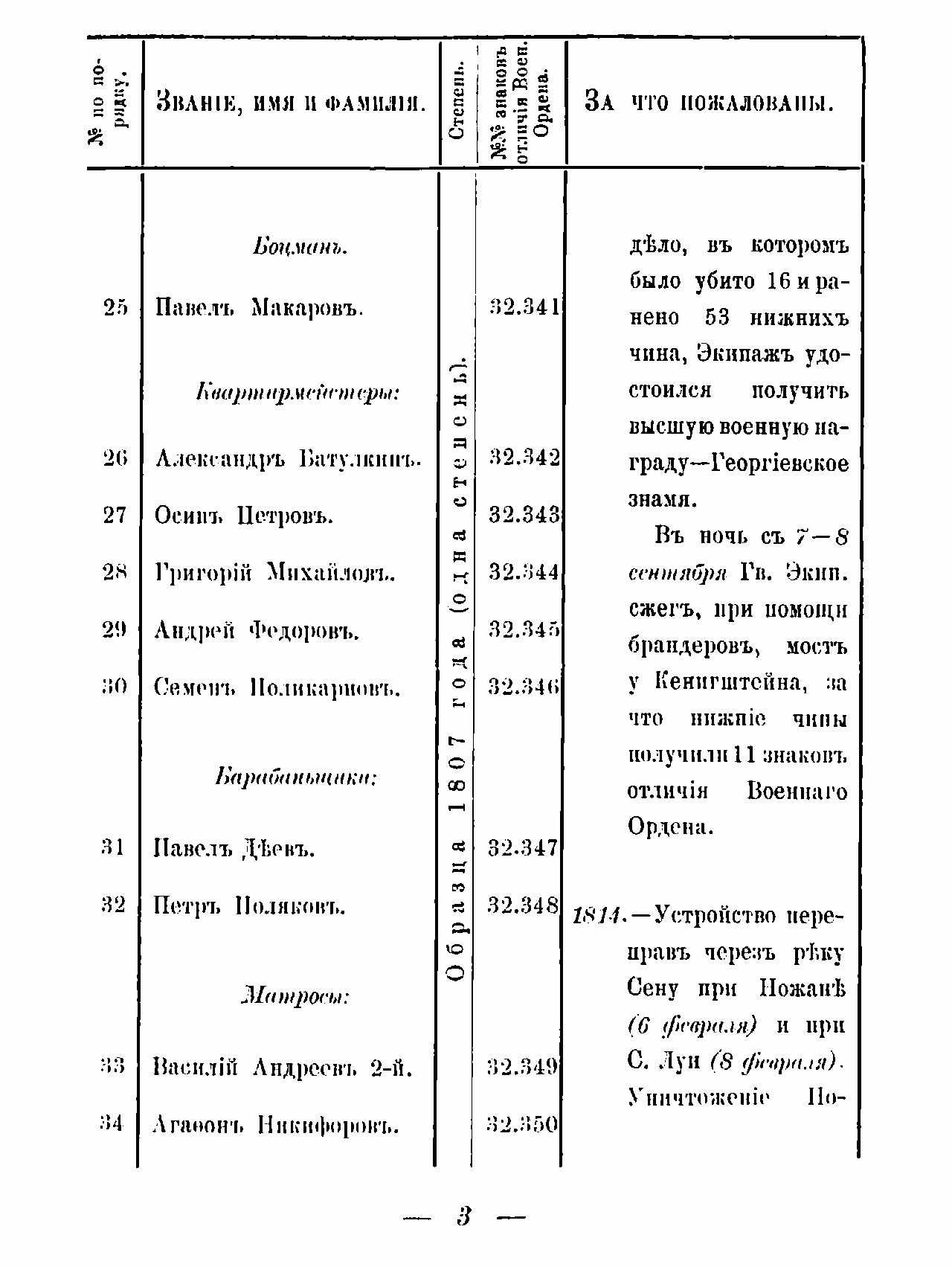 Список нижних чинов - Георгиевских кавалеров Гвардейского экипажа со времени его формирования в 1810 году