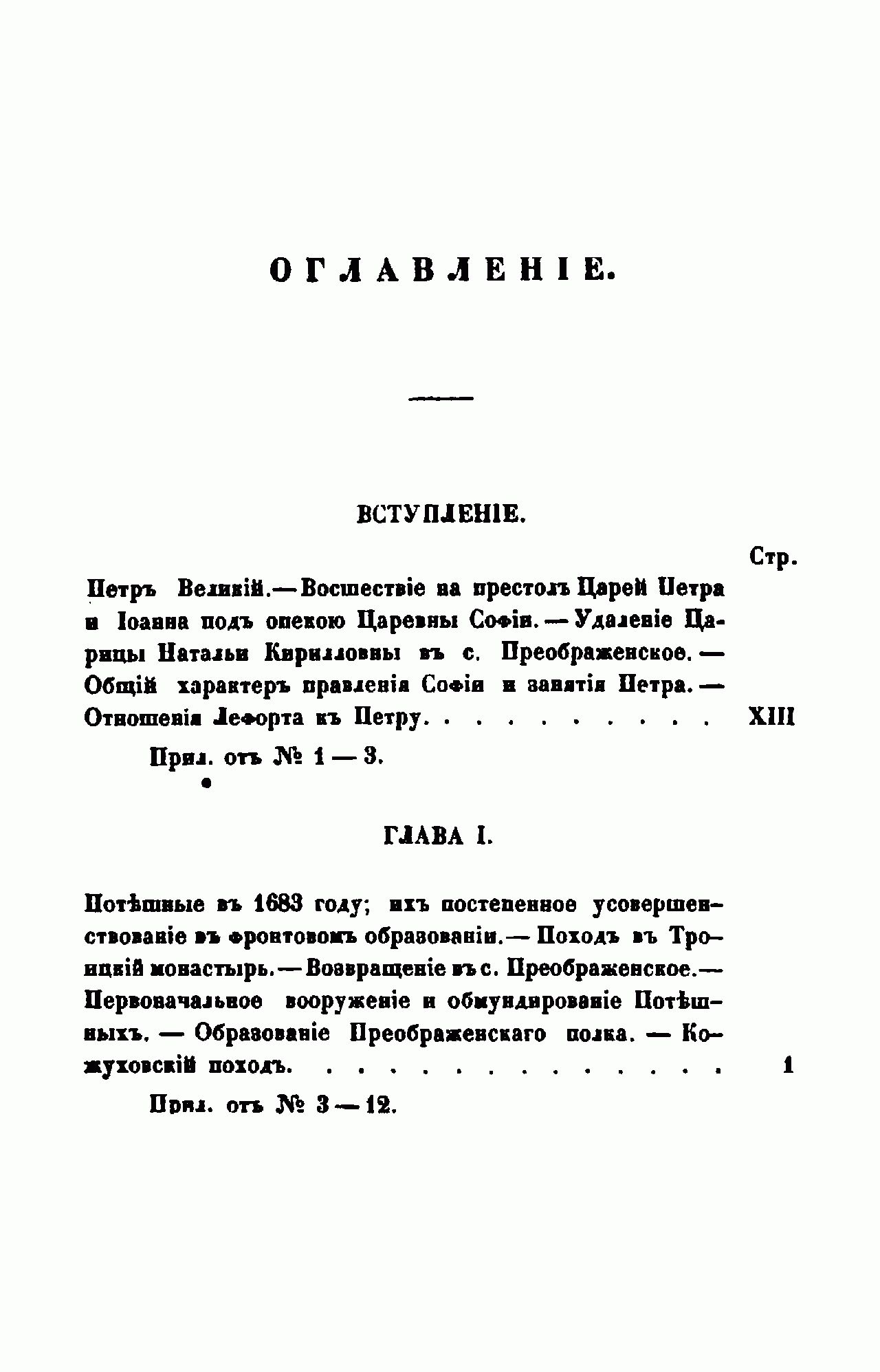 Довольно объемное историческое исследование, подготовленное одним из офицеров полка штабс-капитаном Азанчевским, посвящено начальному периоду истории первого полка русской гвардии, который был создан в 1683 г. по воле юного Петра Великого из числа сверстников «детей боярских» в придворном селе Преображенском под Москвой для «потешных воинских забав». С 1687 г. Преображенский «потешный полк», а также второй полк «потешных», возникший в соседнем селе Семеновском, стали именоваться солдатскими. С началом Северной войны в августе 1700 г. полк впервые официально получил название лейб-гвардии Преображенского. Сам самодержец прошёл все ступени служебной лестницы в этом полку, дослужившись в 1706 г. до звания полковника. С этого времени все российские государи и государыни, занимавшие царский трон, получали это звание и являлись шефами полка. За годы петровского правления лейб-гвардии Преображенский полк превратился в подлинную опору престола и кузницу кадров для рождающейся Империи. Полк, формировавшийся в основном из дворян, принимал участие во всех решающих сражениях и походах 1-й четверти XVIII в. – от «Нарвской конфузии» (1700) до похода в Персию (1722). Об этих событиях подробно рассказывается в этой книге. В ней также опубликовано большое количество документальных материалов о боевой деятельности полка, действовавшего в основном под руководством самого Петра I.