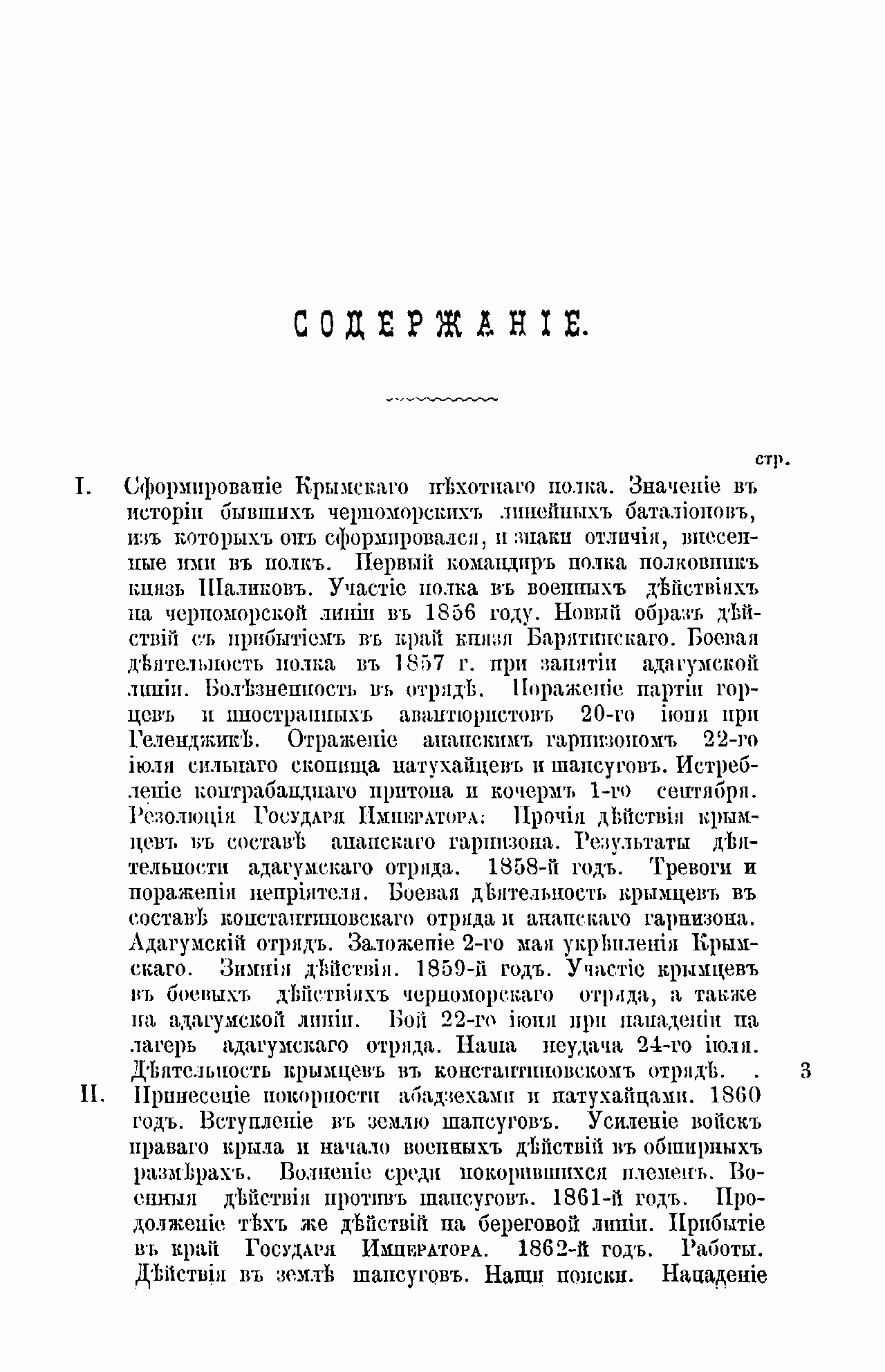Данное издание было специально подготовлено в рамках деятельности по сбору, обработке материалов и обобщению опыта боевых действий на Кавказе, которая была поручена в 1886 г. военно-историческому отделу штаба Кавказского военного округа, возглавлявшемуся генерал-лейтенантом И.С. Чернявским. Крымский пехотный полк был сформирован на Кубани 17 апреля 1856 г. из личного состава 1, 2, 3, 4 и 5-го Черноморских линейных батальонов (Черноморской линии). Первым командиром полка 4 августа 1856 г. был назначен грузинский князь полковник И.О. Шаликов, до этого отличившийся в ходе Крымской войны. 5-й Черноморский линейный батальон, сформированный еще в 1842 г. из Нашебургского пехотного полка, в целях сохранения преемственности передал в Крымский полк Георгиевское знамя с надписью: «За оборону крепости Баязет 20 и 21 июня 1829 г.» и серебряные трубы с надписью: «Нашебургского полка 1814 г. августа 30 в воздаяние отличных подвигов против французских войск». Полк принял активное участие в борьбе с горцами на Черноморской линии. 23 апреля 1857 г. три его батальона перешли реку Кубань и в течение трёх лет участвовали в строительстве и обороне укреплений по Адагумской укреплённой линии. Следующие годы прошли для полка в многочисленных экспедициях и стычках с горцами, закончившихся овладением Западного Кавказа. Боевая служба на Кавказе была отмечена пожалованием всему полку знаков на шапки с надписью: «За отличие при покорении Западного Кавказа в 1864 г.», а 25 марта 1864 г. к названию полка был присоединён № 73 и он был переформирован по штатам в 4-батальонный состав. 1 апреля 1866 г. сын главнокомандующего Кавказской армией великий князь Александр Михайлович, был назначен шефом полка. С этого времени он получил наименование 73-го пехотного Крымского Его Императорского Высочества Великого Князя Александра Михайловича полка. Брат императора великий князь Михаил Николаевич, назначенный вместо князя Барятинского (в конце 1862 года) наместником Кавказа, был вынужден продолжать военные действия. А генерал Н.И. Евдокимов, несколько лет уже ведший войну с горцами Западного Кавказа, особенно в Закубанском крае, весной 1864 года успешно ее закончил). Перед началом русско-турецкой войны 1877–1878 гг. полк был направлен в состав Эриванского отряда. Пробыв в Эривани (Ереване) до начала военных действий, 18 апреля 1877 г. батальоны полка заняли крепость Баязет. Оставив 2 роты в Баязете, полк двинулся в Армению и участвовал 4 и 9 июня в боях при Драм-Даге и селе Даяр. Выступив затем на выручку осажденного Баязета, крымцы после упорного сражения 28 июня 1877 г. с 13-тысячным турецким корпусом освободили гарнизон крепости. Охраняя границу Эриванской губернии от вторжения турок, они участвовали 23 и 28 октября во взятии укреплённой позиции у Деве-Бойну и неудачном штурме крепости Эрзерум. За мужество, проявленное полком в ходе русско-турецкой войны, ему был пожалован 13 октября 1878 г. «поход за военное отличие» и добавлена надпись на Георгиевское знамя: «За дела 4 и 9 июня и освобождение Баязета 28 июня 1877 г.». 7 и 8-я роты, входившие в состав гарнизона Баязета во время 23-дневной осады, были награждены Георгиевскими рожками с надписью: «За геройскую защиту Баязета с 6–28 июня 1877 г.». В 1880–1881 гг. 9 и 10-я роты приняли участие в Ахал-Текинской экспедиции генерала М.Д. Скобелева и за штурм Геок-Тепе были награждены 9 июня 1882 г. з