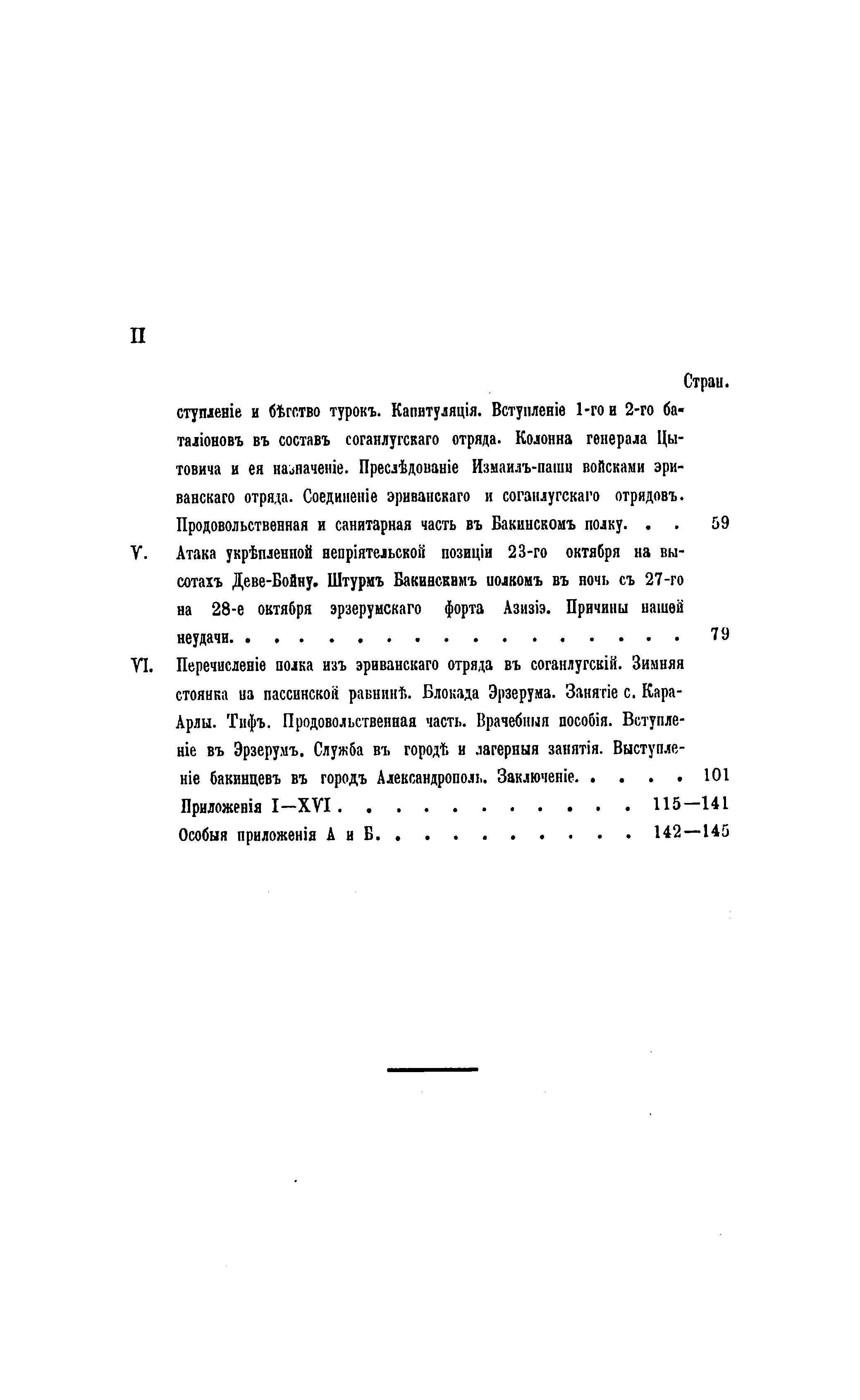 Данное издание специально подготовлено в рамках деятельности по сбору, обработке материалов и обобщению опыта боевых действий в период русско-турецкой войны 1877-1878 гг. на Кавказском ТВД, которая была поручена в 1886 г. военно-историческому отделу штаба Кавказского военного округа, возглавлявшемуся генерал-лейтенантом И. С. Чернявским. Краткий очерк боевых действий 153-го пехотного Бакинского Его мператорского Высочества Великого Князя Сергея Михайловича полка, сформированного в 1863 г. из резервных – батальона Крымского полка и Кавказского батальона, посвящён описанию его боёв в составе Кавказской армии, в колонне командира Елизаветпольского полка полковника князя М.К. Амираджибова. В ходе выдвижения от Ахалкалаки полк 4 мая 1877 г. взял в районе турецкой крепости Ардаган Гюлавердынские высоты, а на следующий день – укрепление Ахали. Другим важным сражением для бакинцев было взятие форта Азизие, в ночь на 28 октября 1877 г. Овладение этим фортом должно было находиться в связи с одновременным взятием трёх остальных фортов, защищавших подступы к городу-крепости Эрзерум. Однако боевая задача выполнена была только одним Бакинским полком, взобравшимся на вал по штурмовым лестницам и овладевшим укреплением после ночного штыкового боя. На следующее утро, из-за отсутствия поддержки, полку пришлось отступить, причём отступление проходило под натиском противника и его сильным огнем. Несмотря на это, полку удалось захватить до 600 пленных, взятых ночью. Помимо этого полк отличился: 12 августа 1877 г. — при занятии Аббас-Гельского перевала, 8 сентября — в бою за селение Чарухчи, 19 и 20 сентября — при наступлении против Кизил-Гула, 2 и 3 октября — при взятии Авлиара и Визинкейских высот и 23 октября — при атаке укреплённой позиции Деве-Бойну. Эти события детально изложены в представленном очерке. В приложениях содержатся поименные списки офицеров и нижних чинов полка, раненных и убитых в ходе боевых действий.