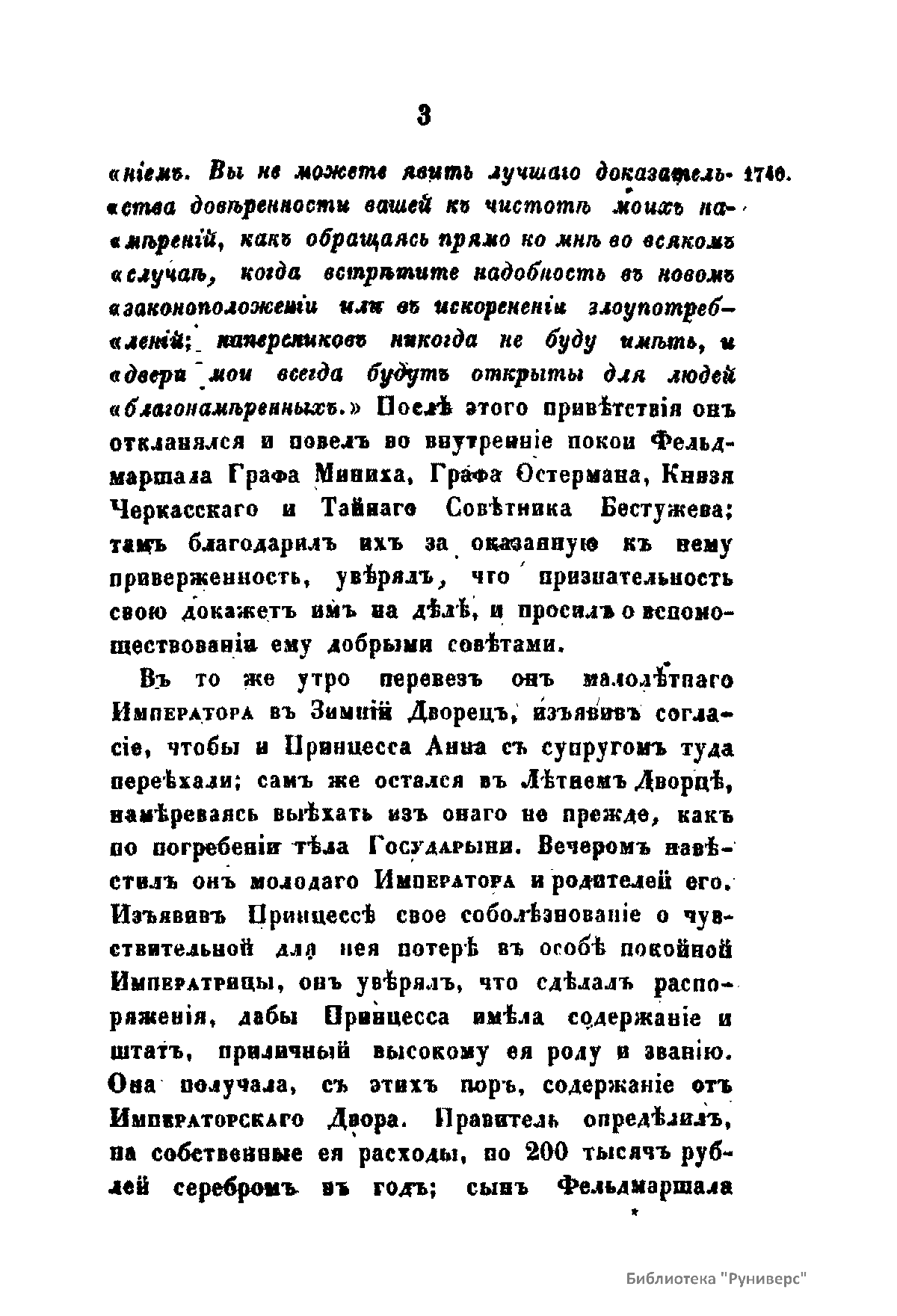 Обзоръ главнѣйшихъ происшествий въ Россiи, съ кончины Петра Великаго до вступленiя на престолъ Елисаветы Петровны. Часть III