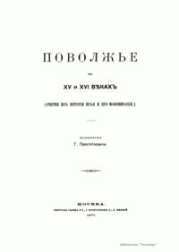 Поволжье въ XV и XVI вѣкахъ (очерки изъ исторiи края и его колонизацiи)
