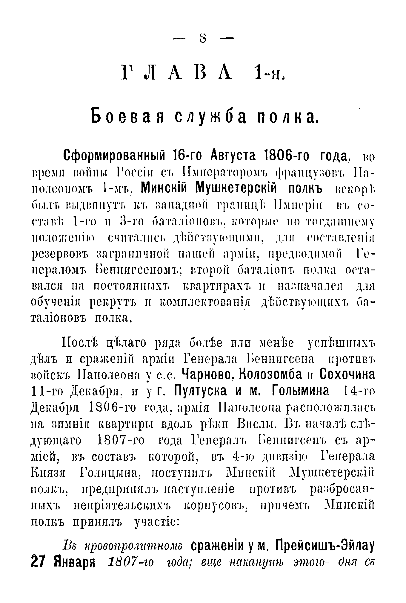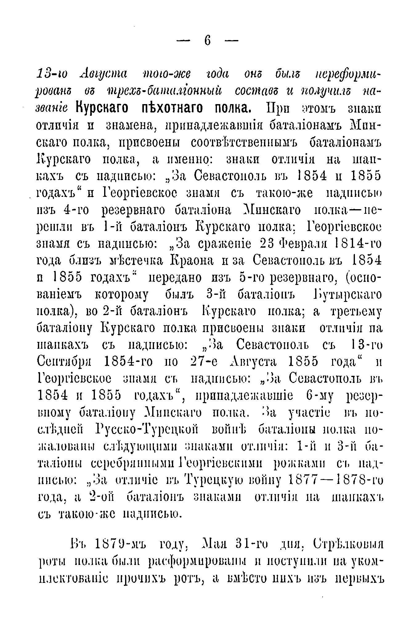 Документальное описание боевых действий полка и знаменательных исторических событий, связанных с ним, за период 1806 – 1879 годов. Приведены описания личных боевых подвигов чинов полк и начальствующих лиц.