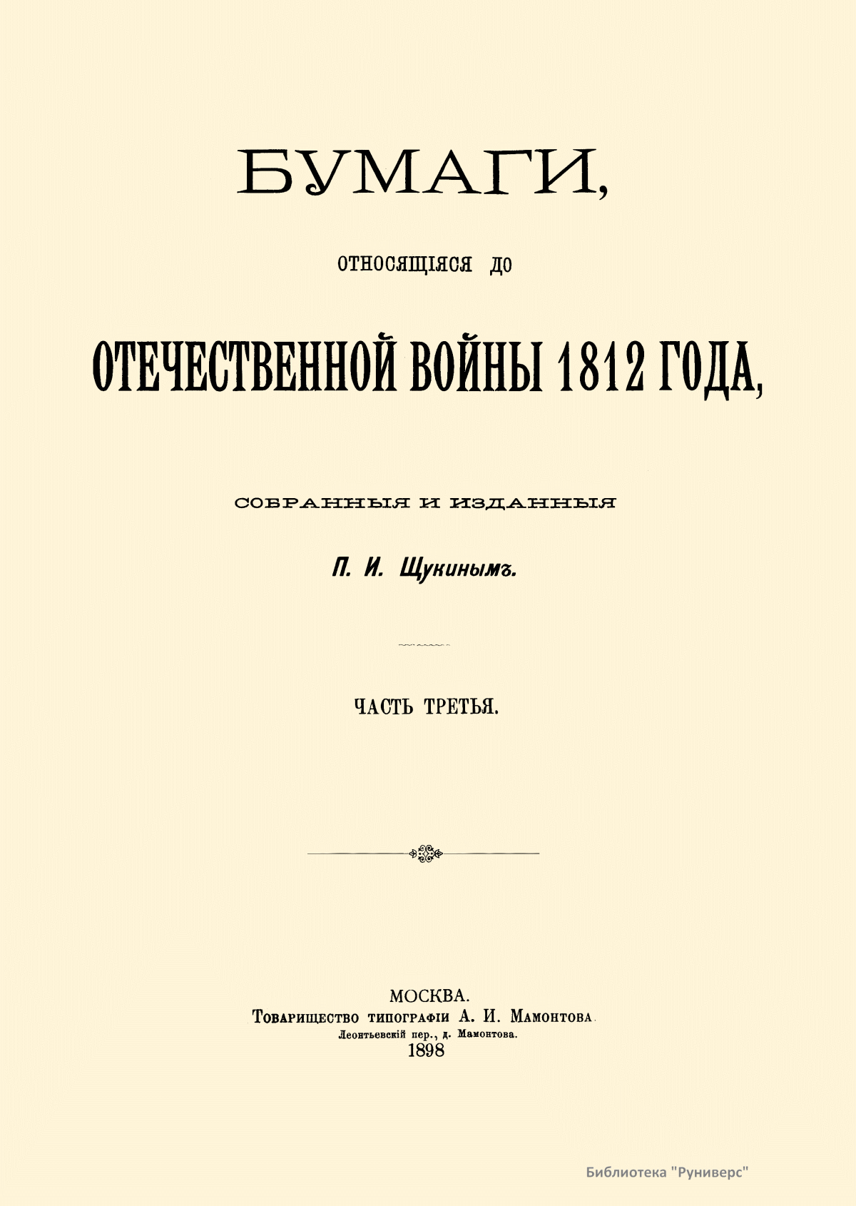Бумаги относящиеся до отечественной войны 1812 года. Часть третья