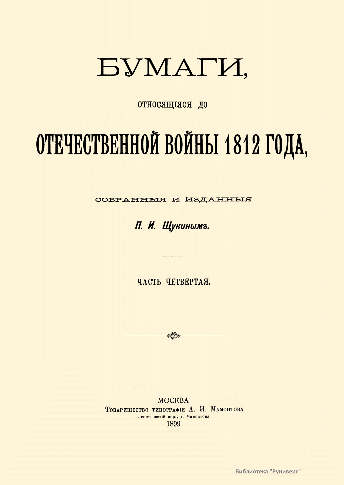 Бумаги относящиеся до отечественной войны 1812 года. Часть четвертая
