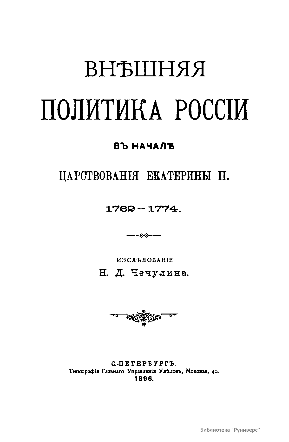 Внѣшняя политика Россiи въ началѣ царствованiя Екатерины II. 1762-1774