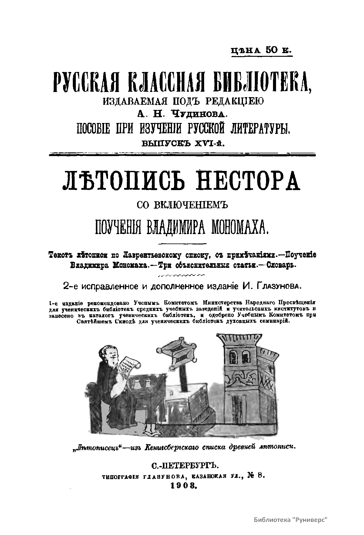 Лѣтопись Нестора со включенiемъ поученiя Владимира Мономаха