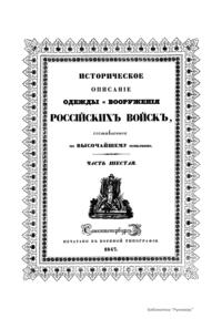 Многотомный труд «Историческое описание одежды и вооружения Российских войск, с рисунками, был составлен по высочайшему повелению» выходил в Санкт-Петербурге в