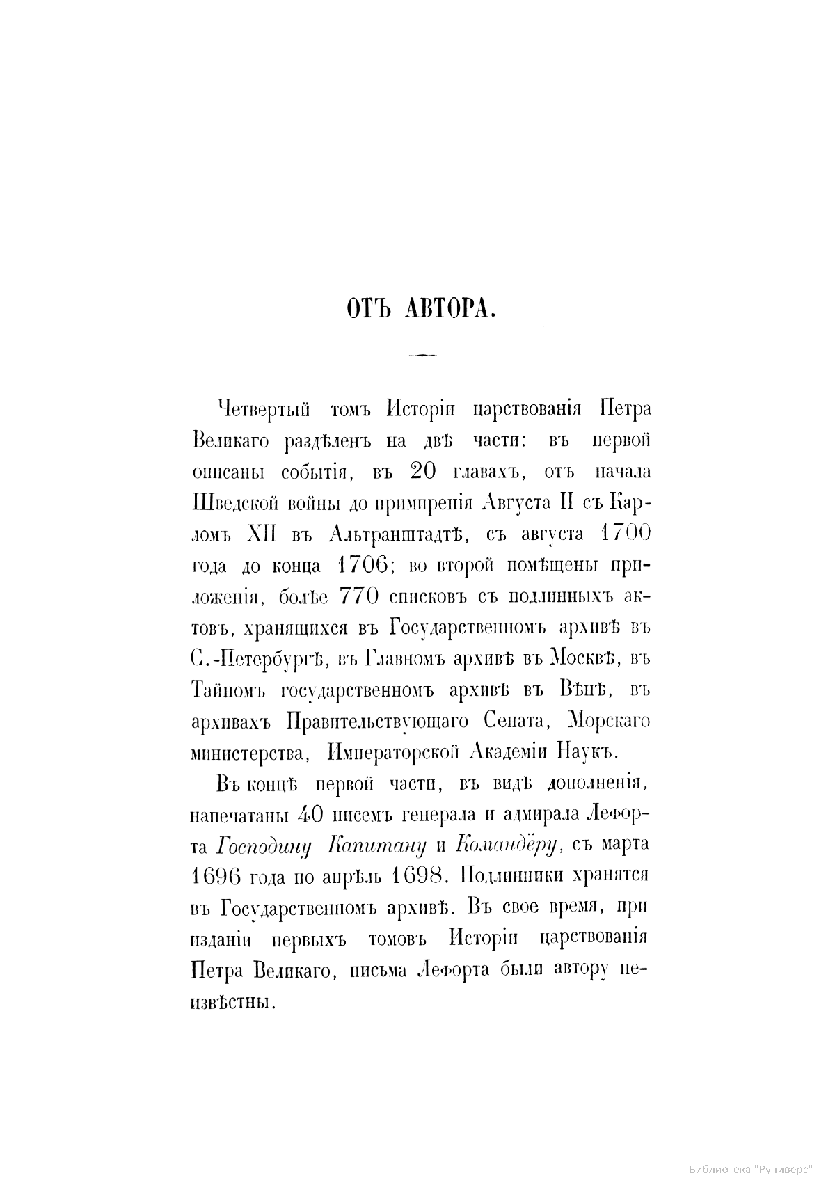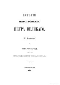 Исторiя царствования Петра Великаго. Томъ четвертый. Часть I