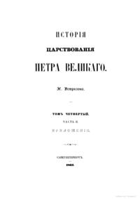 Исторiя царствования Петра Великаго. Томъ четвертый. Часть II