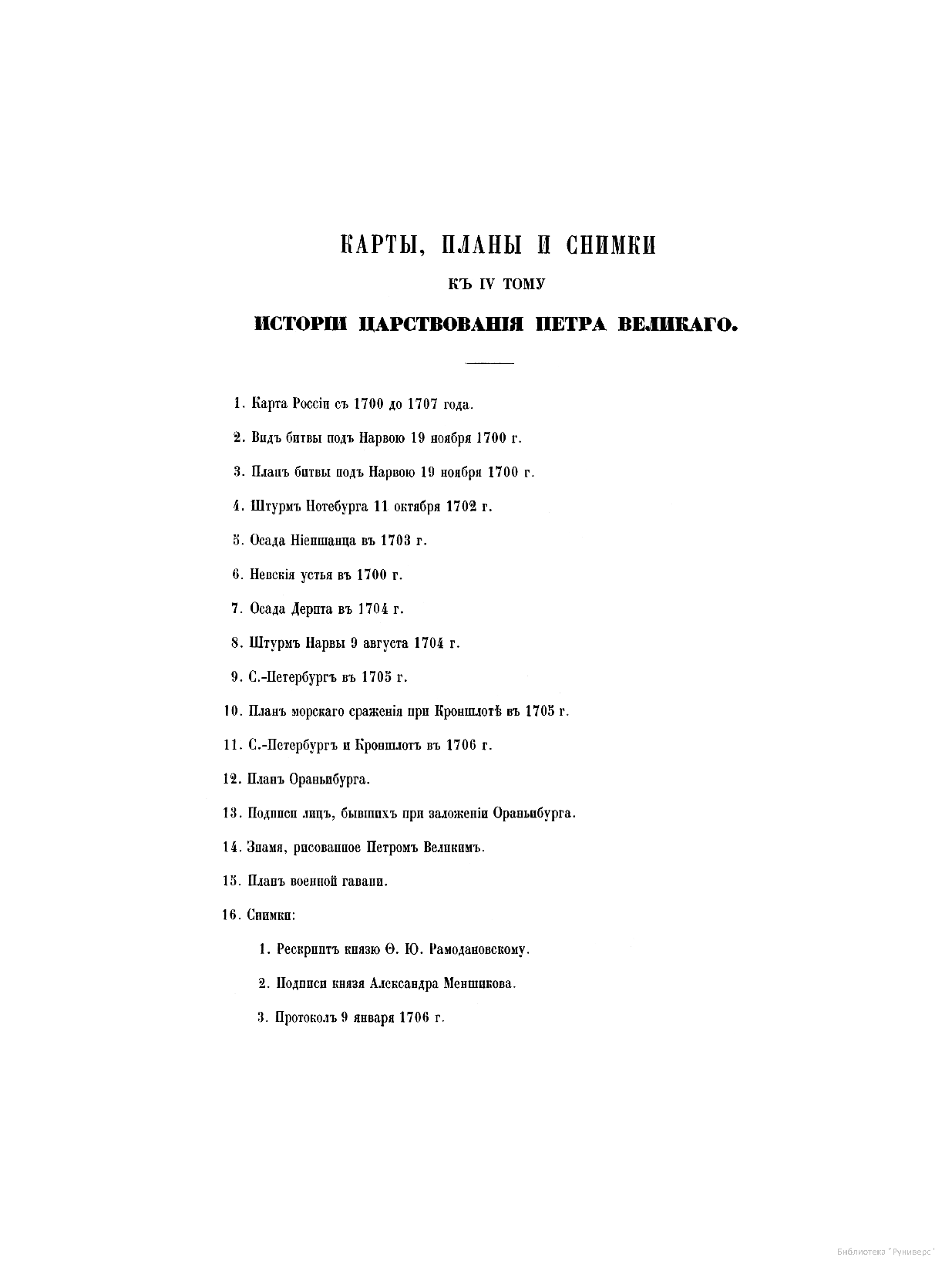 Карты, планы и снимки к четвертому тому исторiи царствованiя Петра Великаго