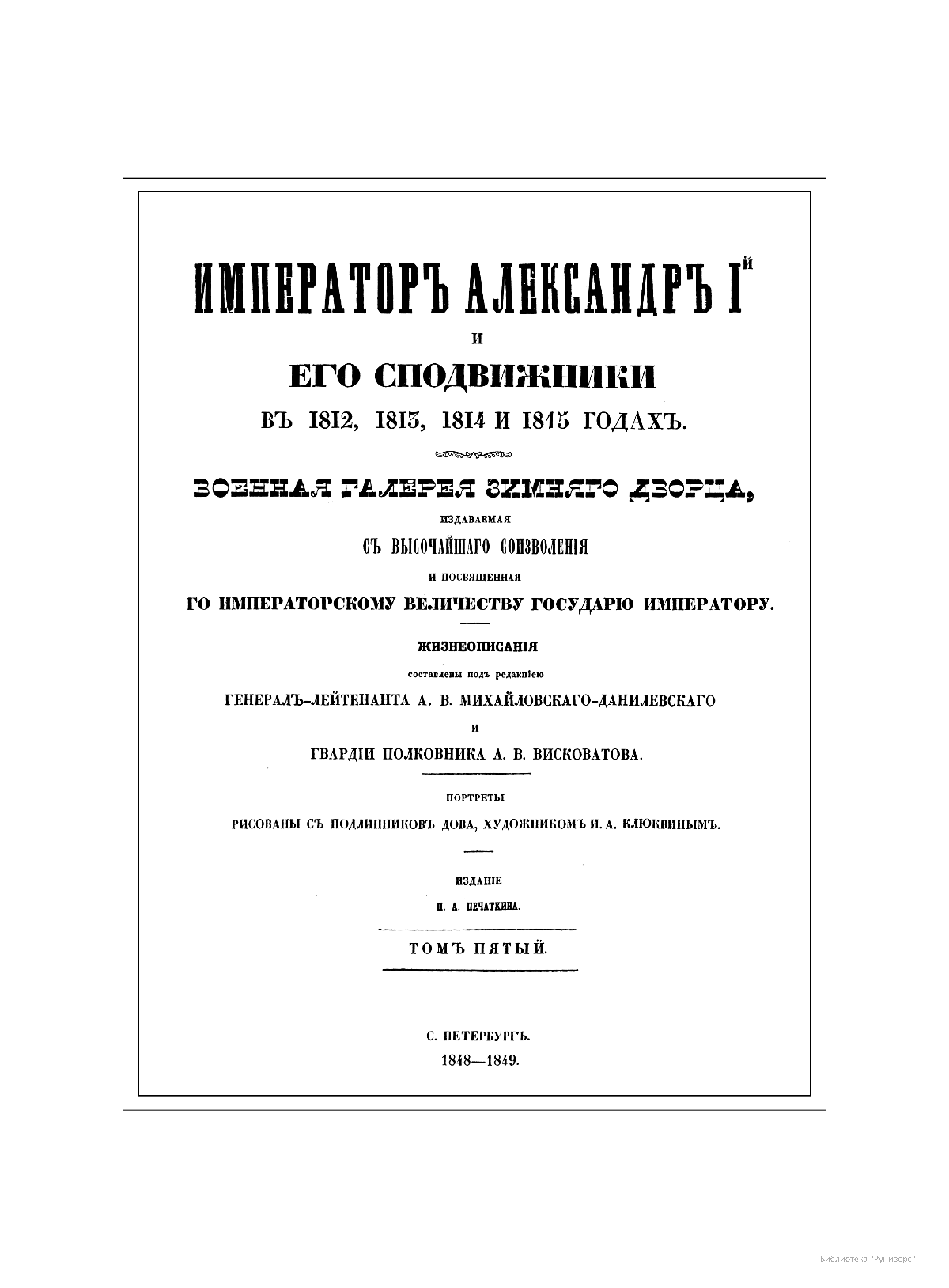 Императоръ Александръ I и его сподвижники въ 1812, 1813, 1814, 1815 годахъ. Томъ пятый