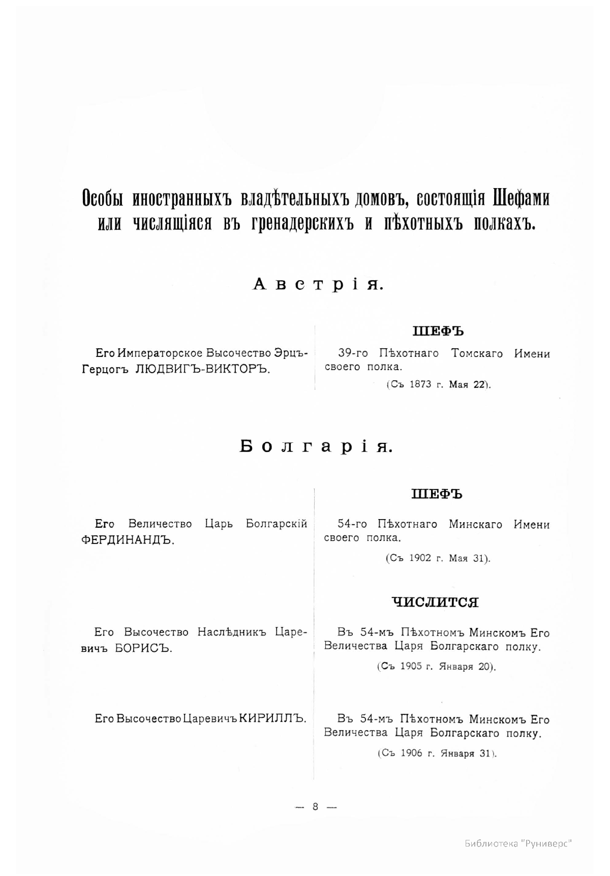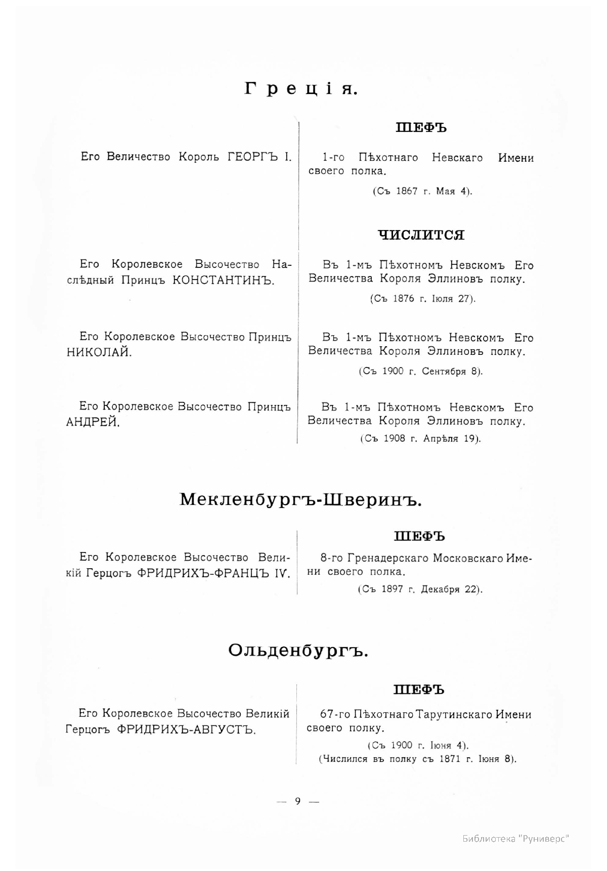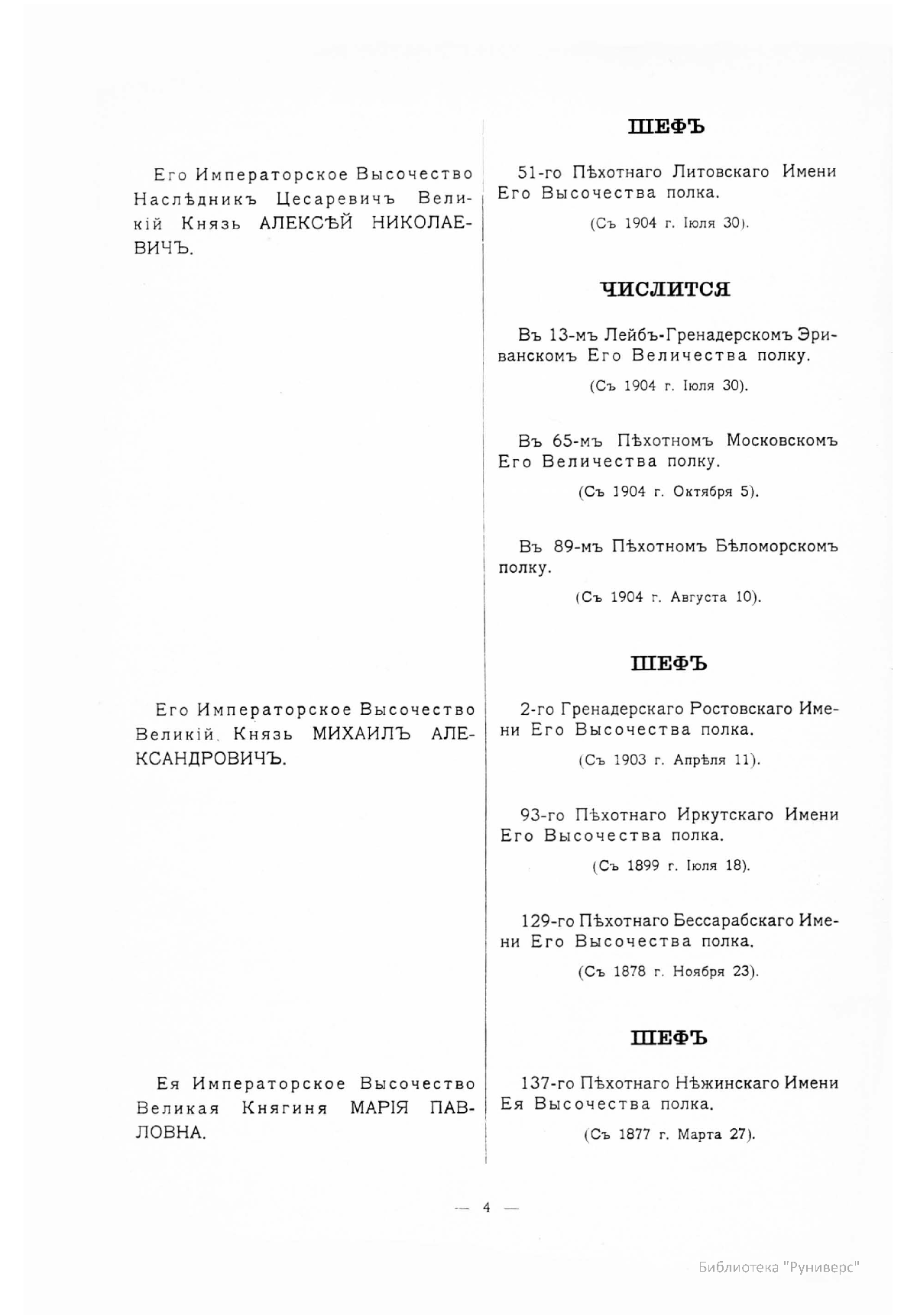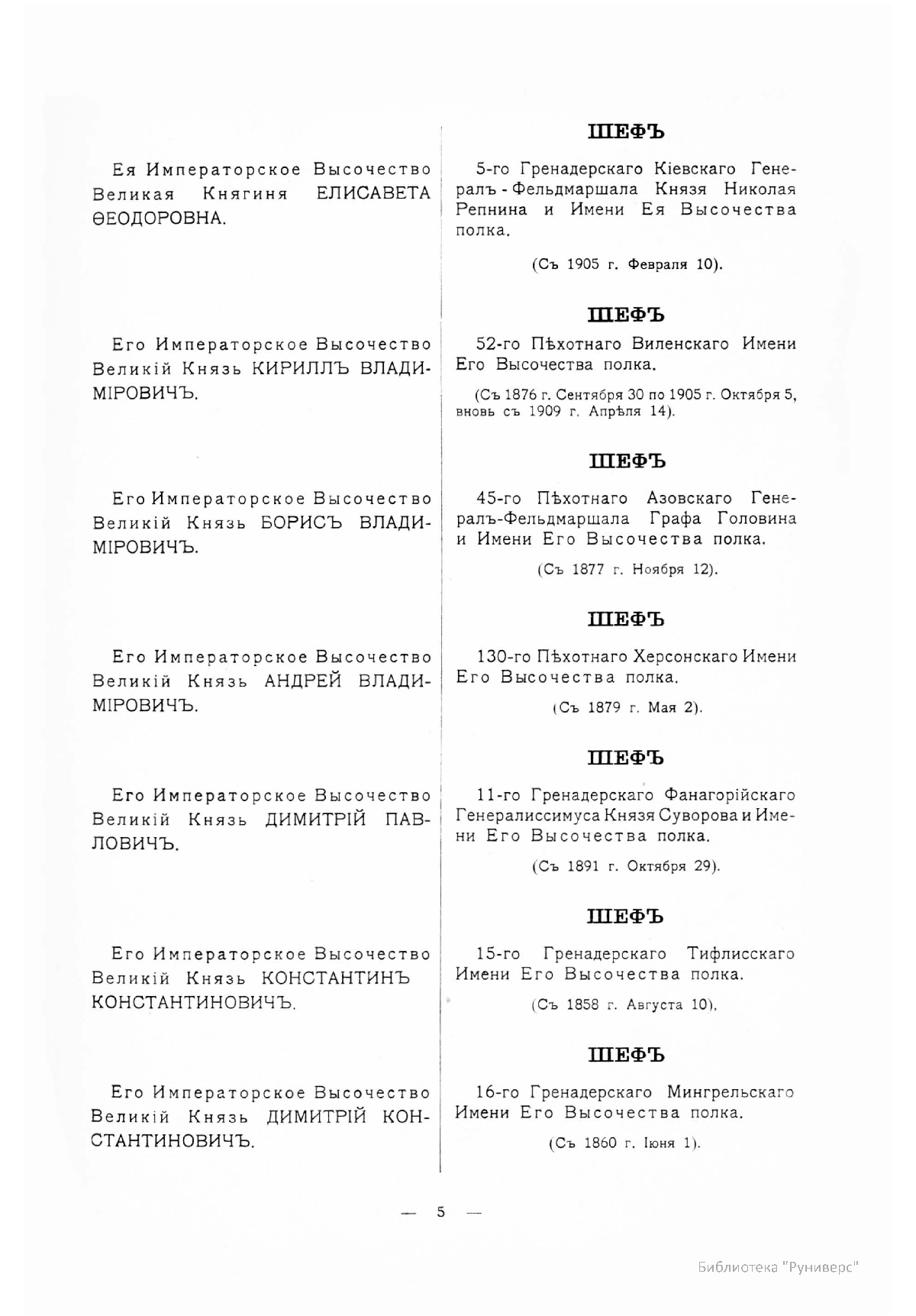 Гренадерскiе и Пѣхотные Полки