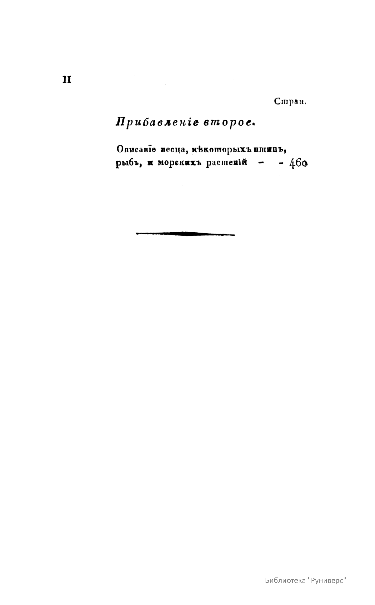Атлас содержит иллюстративный материал к «Полному собранию ученых путешествий по России», издававшемуся под эгидой Санкт-Петербургской академии наук в 1818–1825 гг. В первую тетрадь первой части атласа вошли карты, планы и иллюстрации, относящиеся к исследованию С. П. Крашенинникова «Описание земли Камчатки» (1 и 2 тома «Собрания»). Вторая тетрадь первой части включает изображения к «Запискам путешествия академика И. И. Лепехина» (3, 4 и 5 тома). Вторая часть атласа с рисунками к «Запискам путешествия академика Фалька», как и восьмой том «Собрания», который должен был содержать третью часть исследования Фалька, изданы не были.