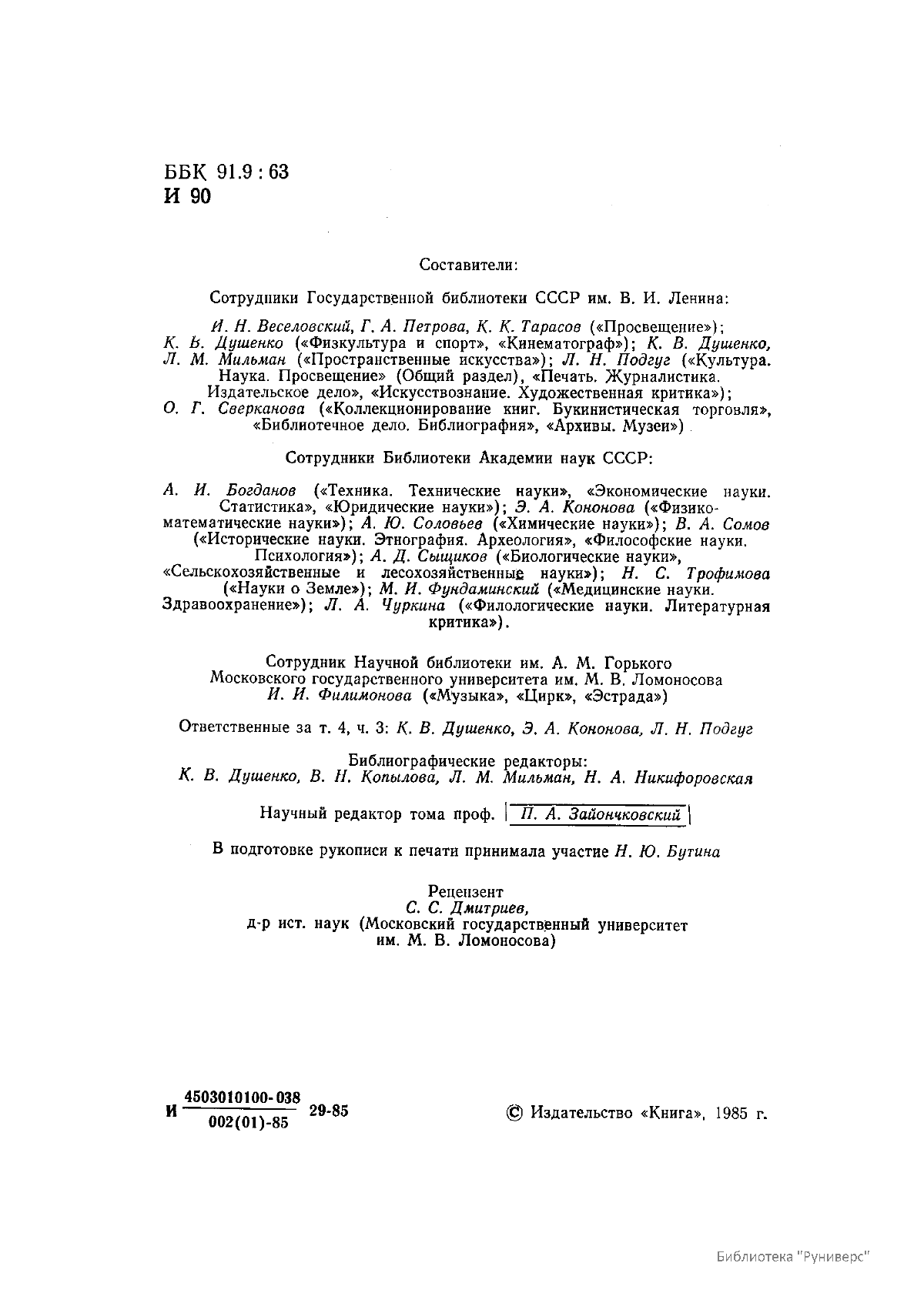 Многотомное издание этого уникального библиографического исследования, ставшего итогом многолетней работы большого коллектива ведущих отечественных источниковедов и библиографов главных библиотек нашей страны, представляет собой крупнейшее собрание аннотированной мемуарной литературы по истории России. Ведущую роль в создании этого фундаментального издания сыграл крупный отечественный ученый-историк П.А. Зайончковский, под редакцией и неусыпным контролем которого разрабатывался и выходил представленный многотомник (последние 5 книг вышли после кончины этого замечательного учёного-энциклопедиста).