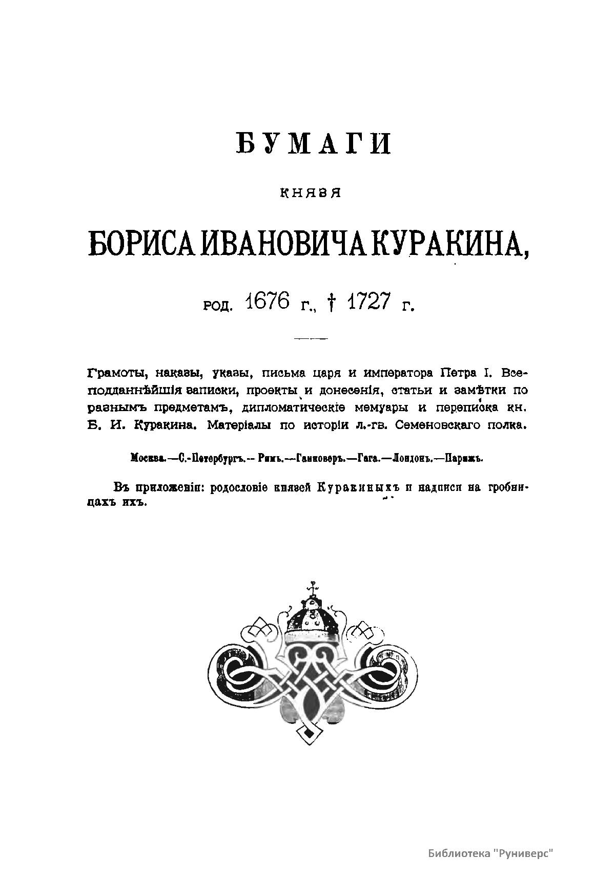 Архив князя Ф.А. Куракина. Книга третья