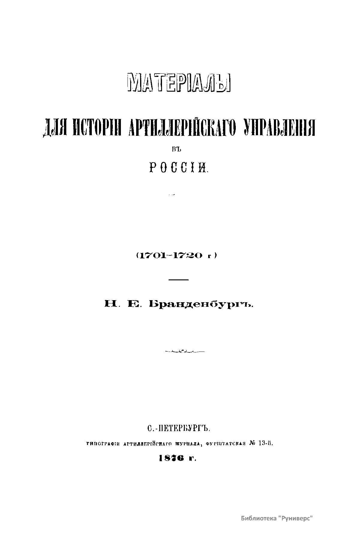 Материалы для истории артиллерийского управления в России (1701-1720 г.)