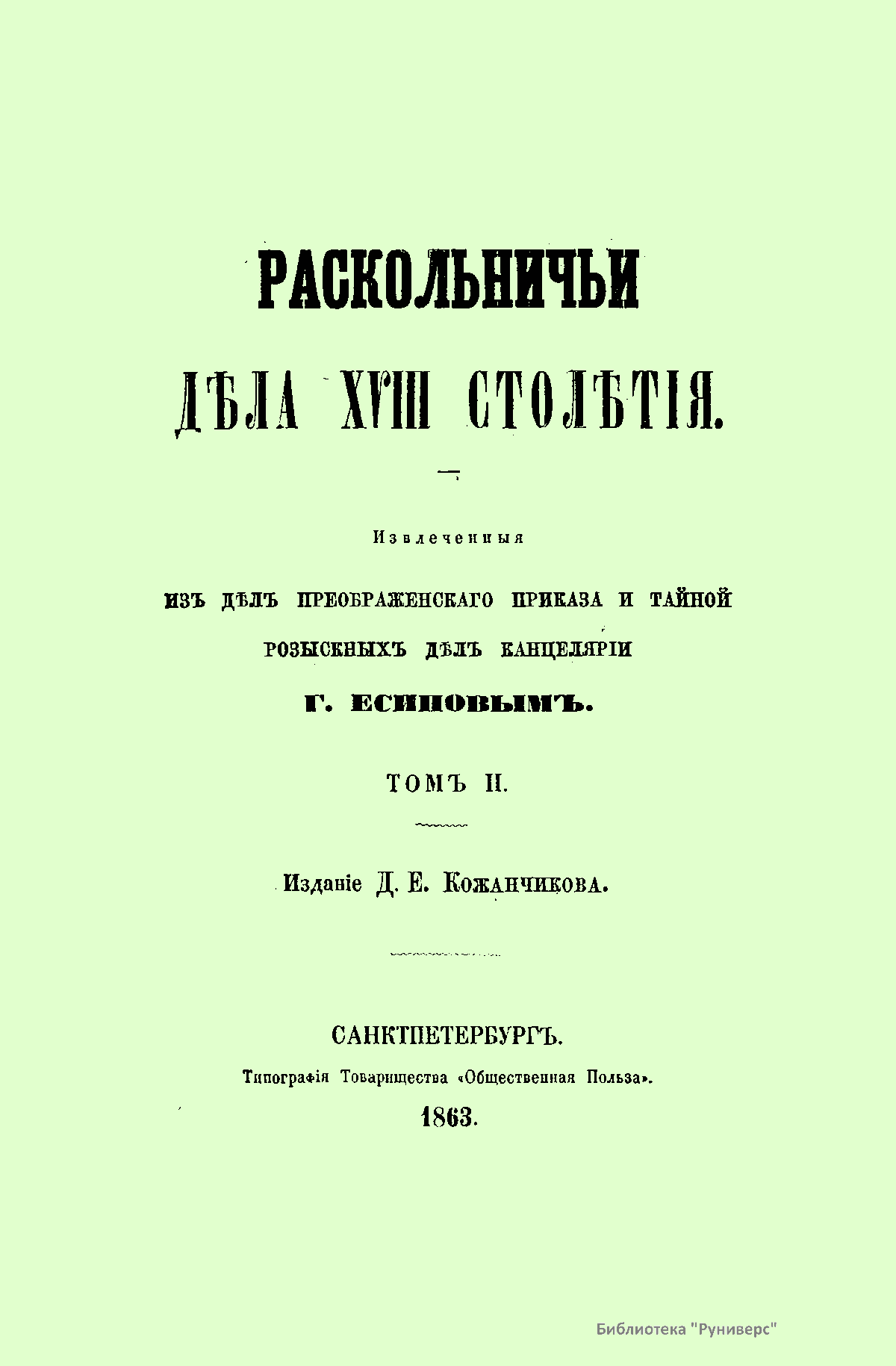 Раскольничьи дѣла XVIII столѣтiя. Томъ II