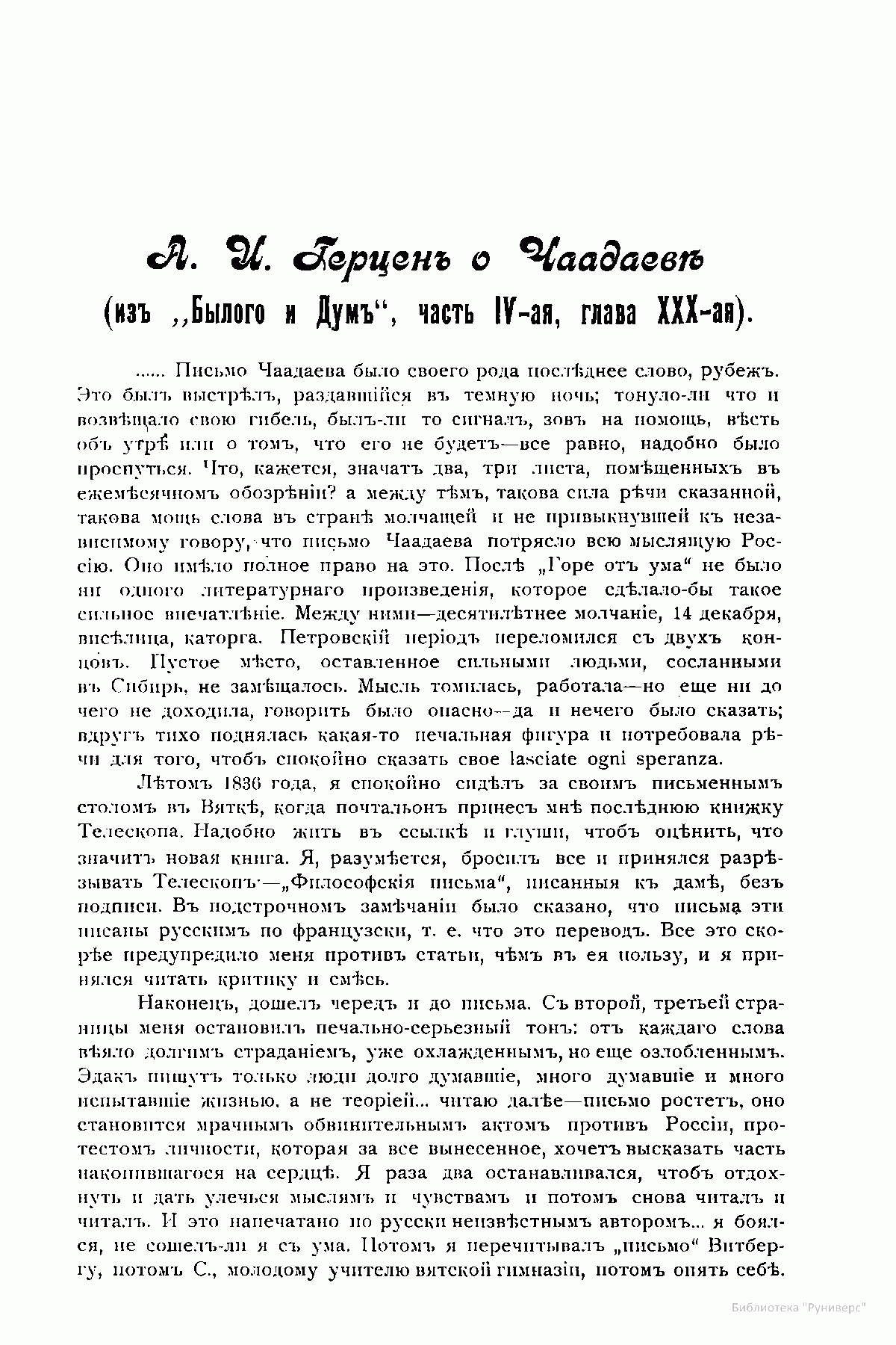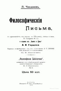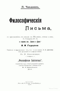 Данное издание имеет сложную композицию: Чаадаев, П.Я. Философические письма, с приложением его письма к Шеллингу, статьи о нем И. Гагарина и отрывка из "Былого и Дум"
