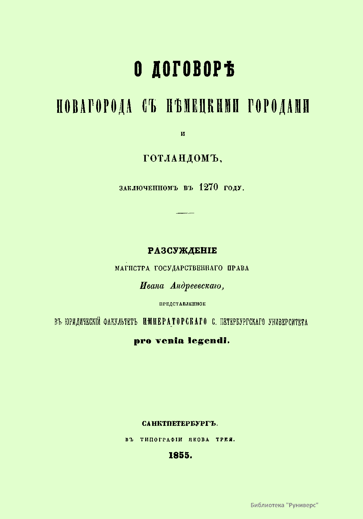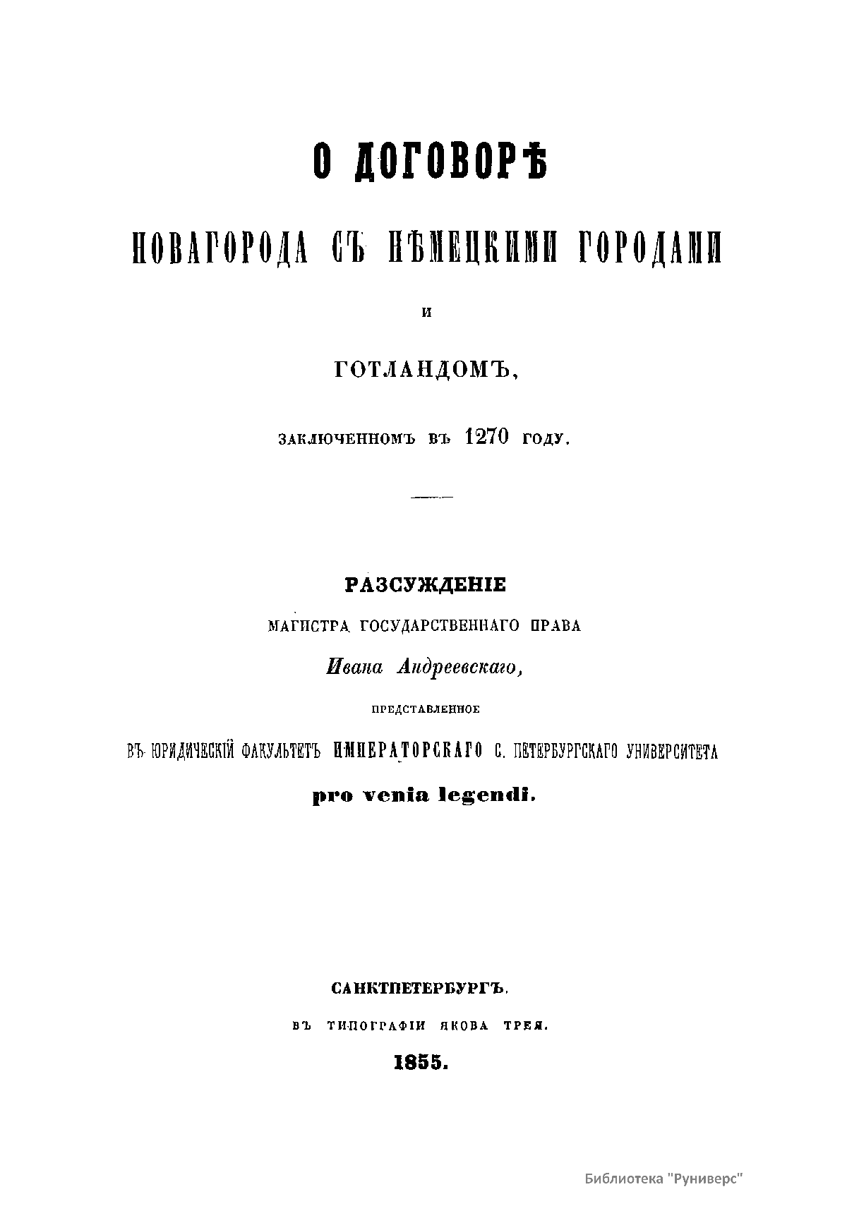 О договорѣ Новагорода съ нѣмецкими городами и Готландомъ, заключенномъ въ 1270 году