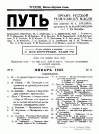 «Путь: Орган русской религиозной мысли» – журнал, издававшийся в Париже с сентября 1925 г. по март 1940 г., собравший на своих страницах все философские и богословские силы русской эмиграции. В редакционной статье «Духовные задачи русской эмиграции» («Путь», № 1. Сентябрь 1925 г.) отмечалось, что журнал ставит своей целью сохранение преемственности в процессе существования русской духовной культуры, а также стремится к преодолению сформировавшейся к тому времени эмигрантской психологии, сильно политизированной и противоречивой в своем отношении к Русской Православной Церкви и Советской России, что создавало угрозу раскола русской эмиграции.