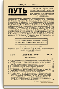 Путь: Орган русской религиозной мысли. №10. Апрель 1928
