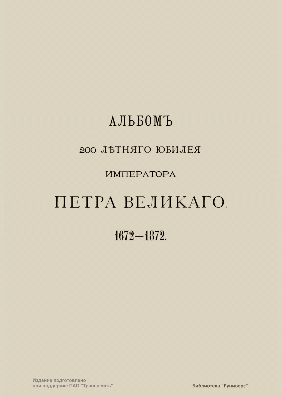 Альбом 200-летнего юбилея императора Петра Великого 1672-1872 гг.