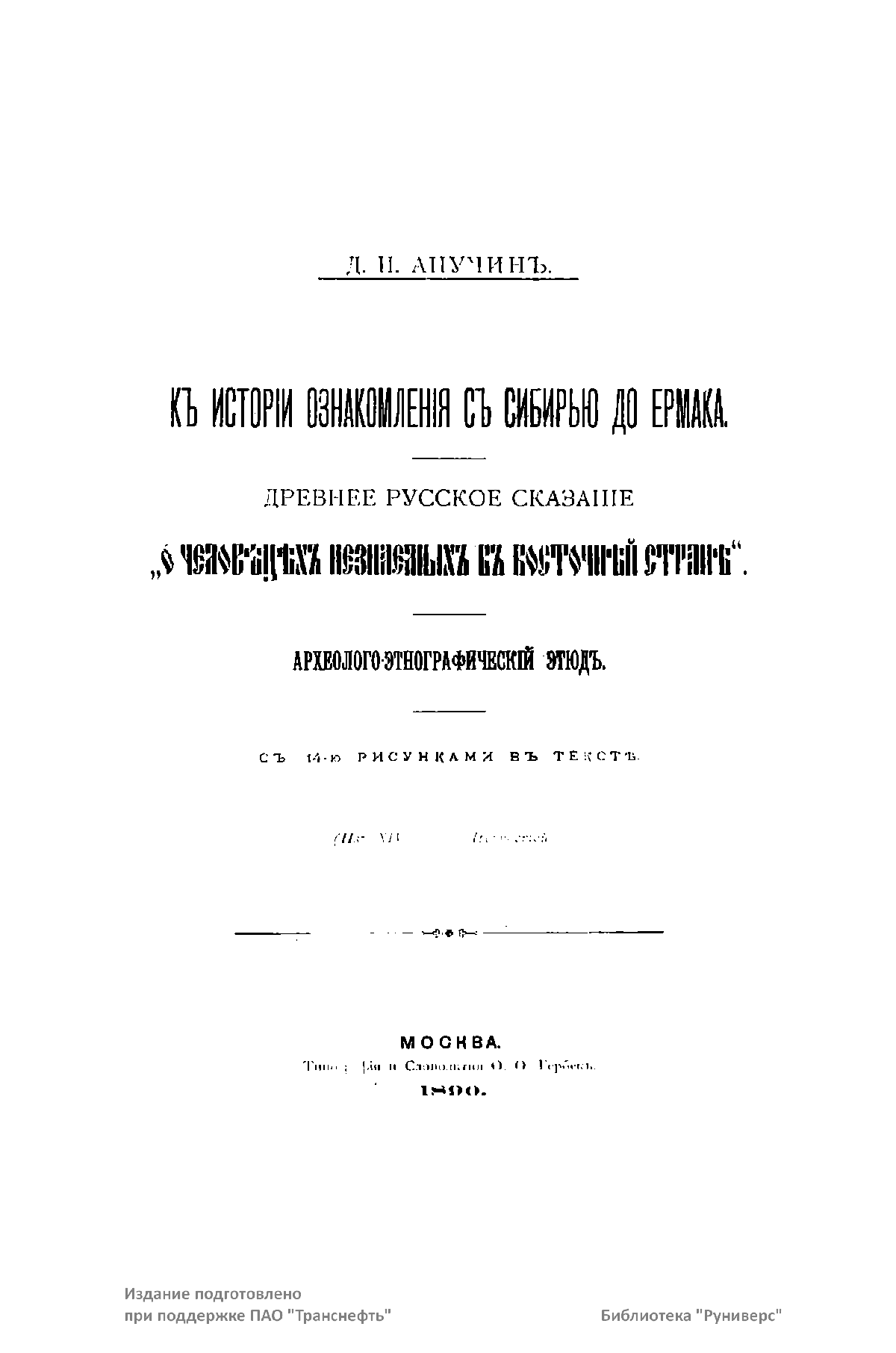 Къ исторiи ознакомленiя съ Сибирью до Ермака