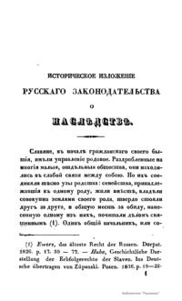 Историческое изложенiе русскаго законодательства о наслѣдствѣ
