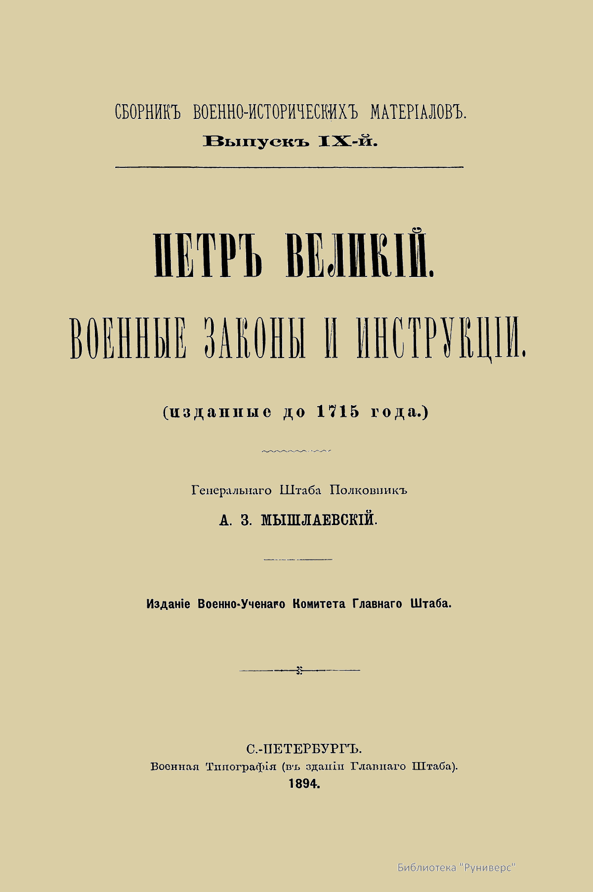 Петр Великий. Военные законы и инструкции (изданные до 1715 года)