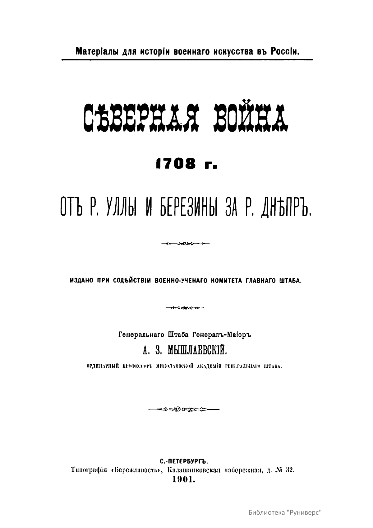 Северная война. 1708 г. От р. Уллы и р. Березины до р. Днепр.