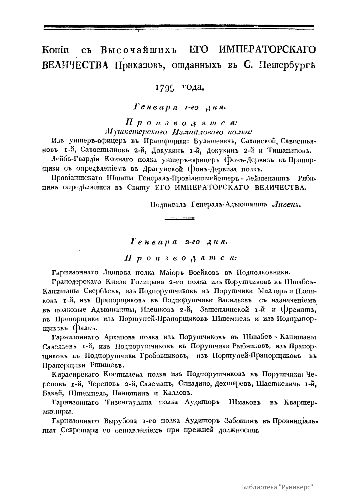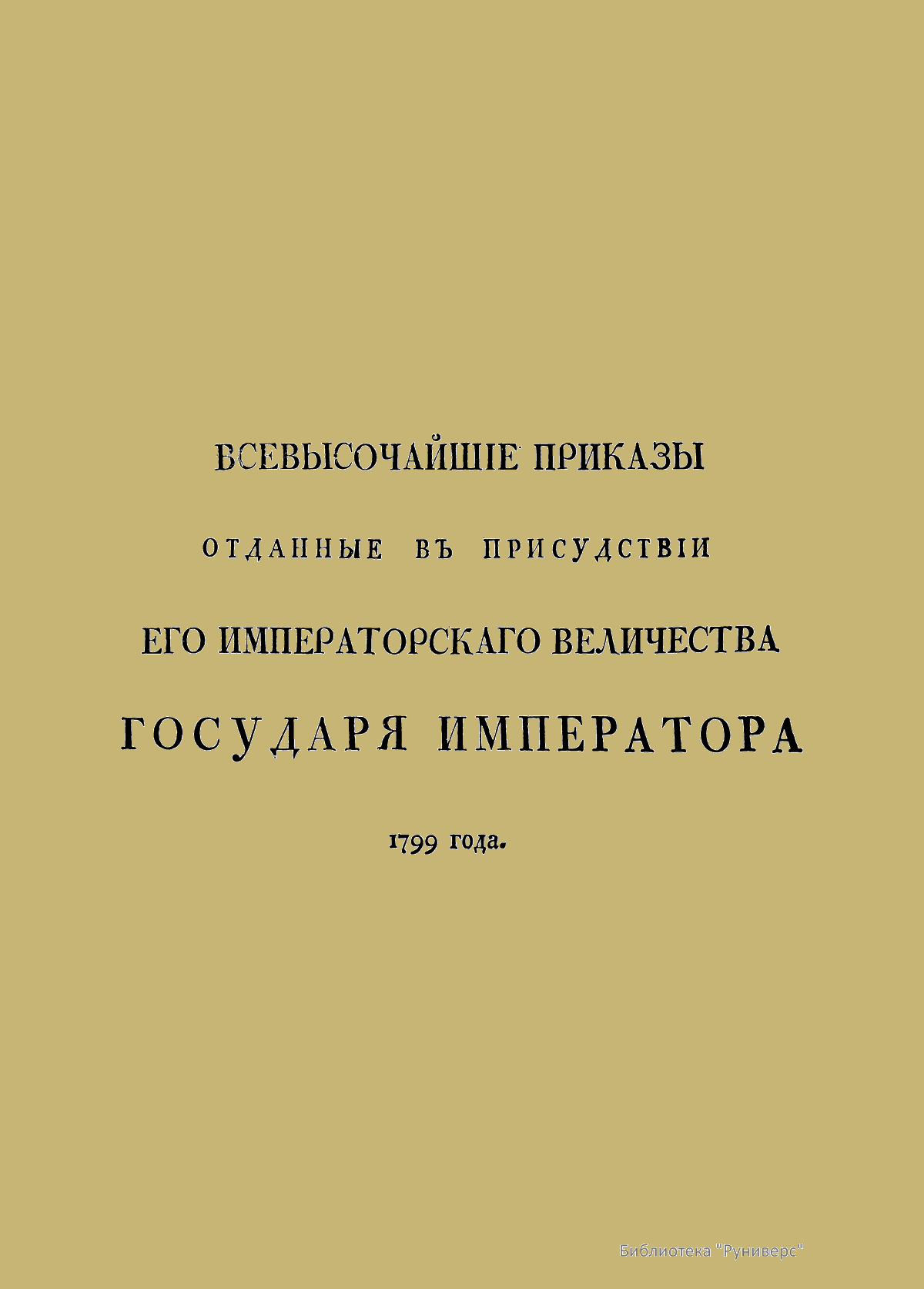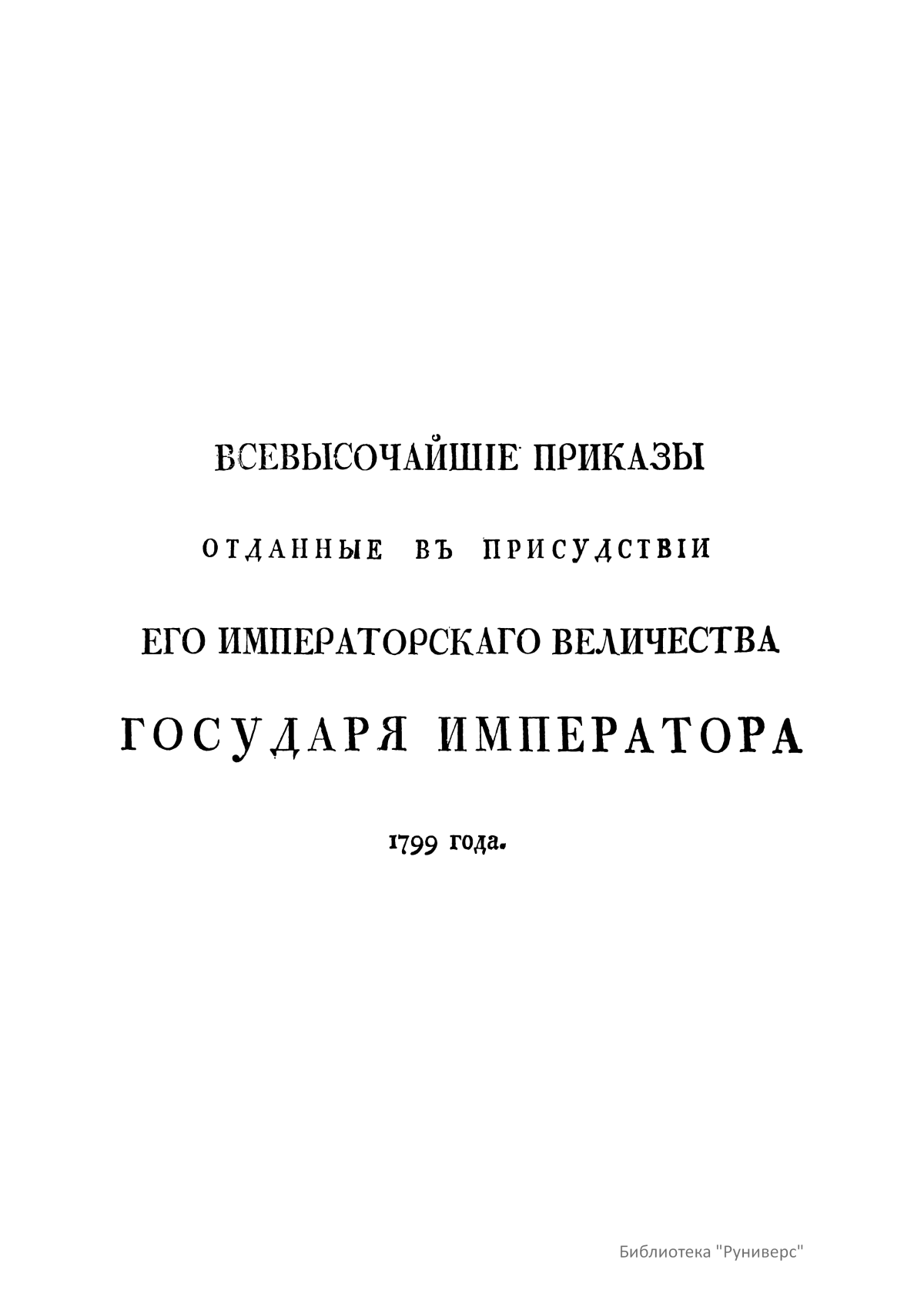 Всевысочайшие приказы, отданные в присутствии Его Императорского Величества Государя Императора, со вступления его на Всероссийкий престол. 1799