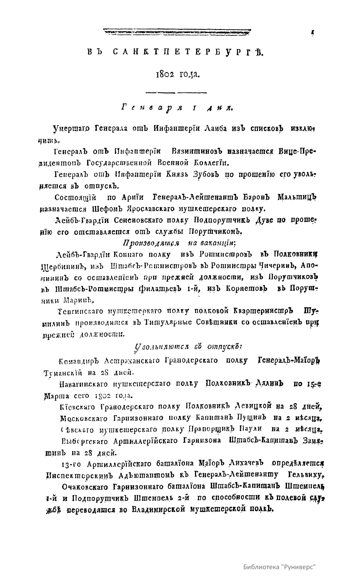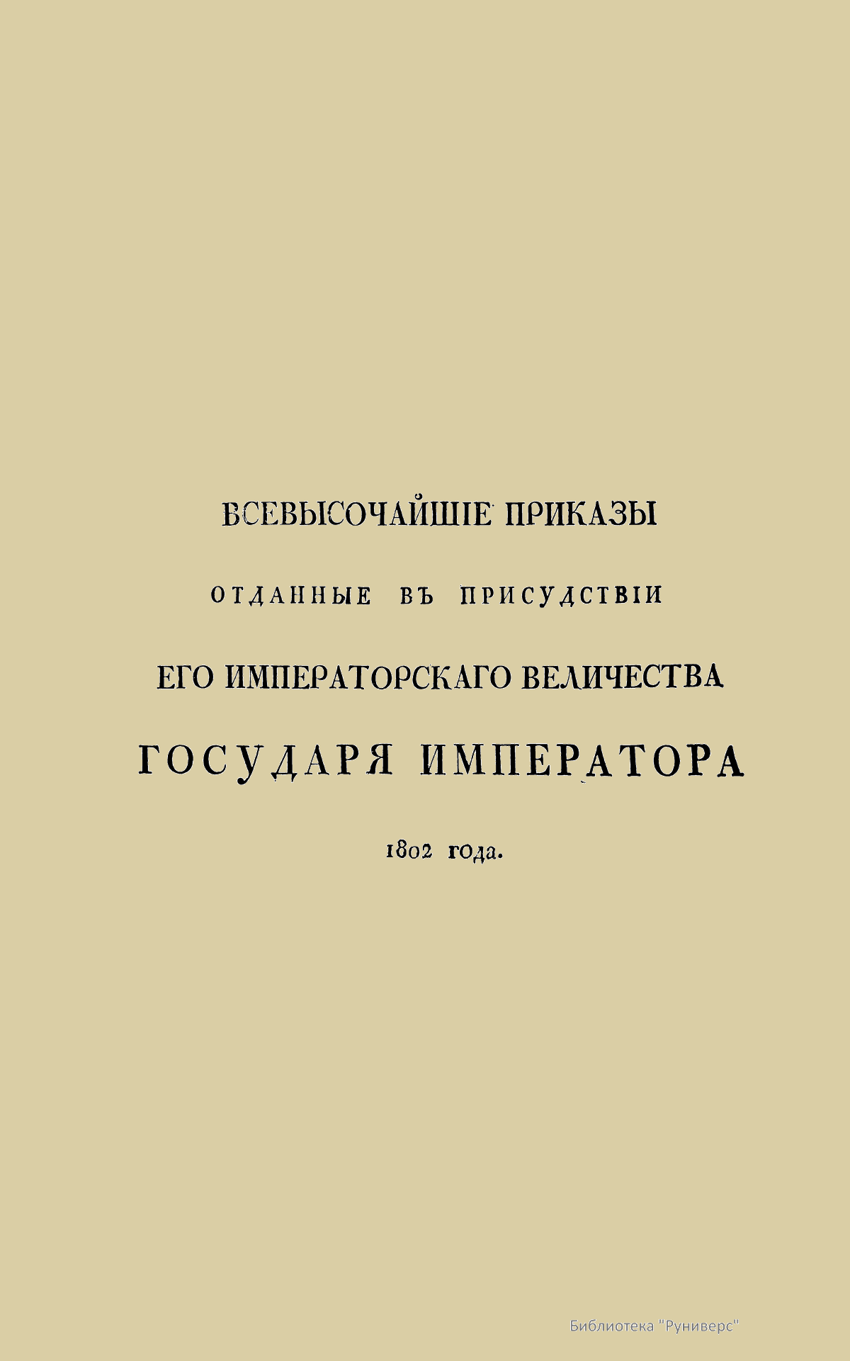 Всевысочайшие приказы, отданные в присутствии Его Императорского Величества Государя Императора, со вступления его на Всероссийкий престол. 1802