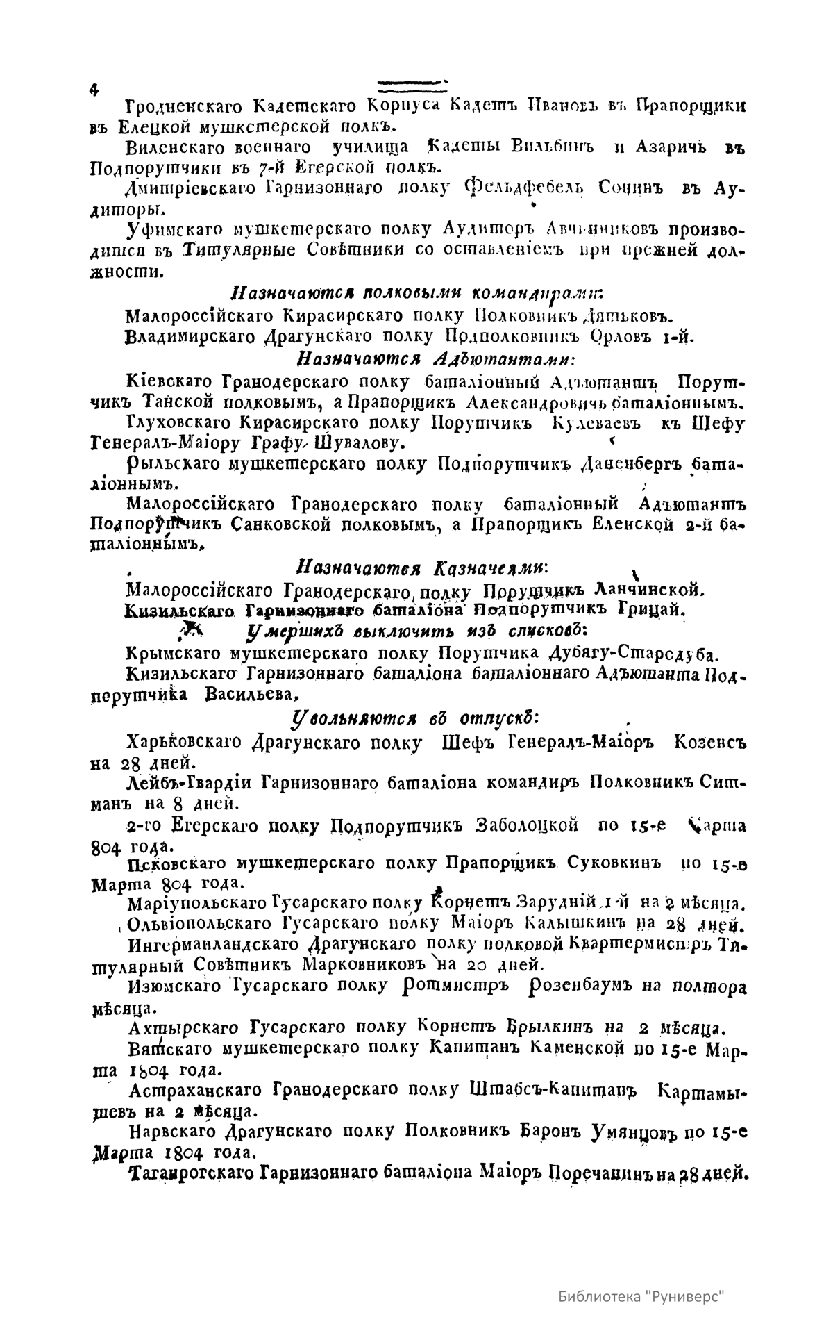Всевысочайшие приказы, отданные в присутствии Его Императорского Величества Государя Императора, со вступления его на Всероссийкий престол. 1804