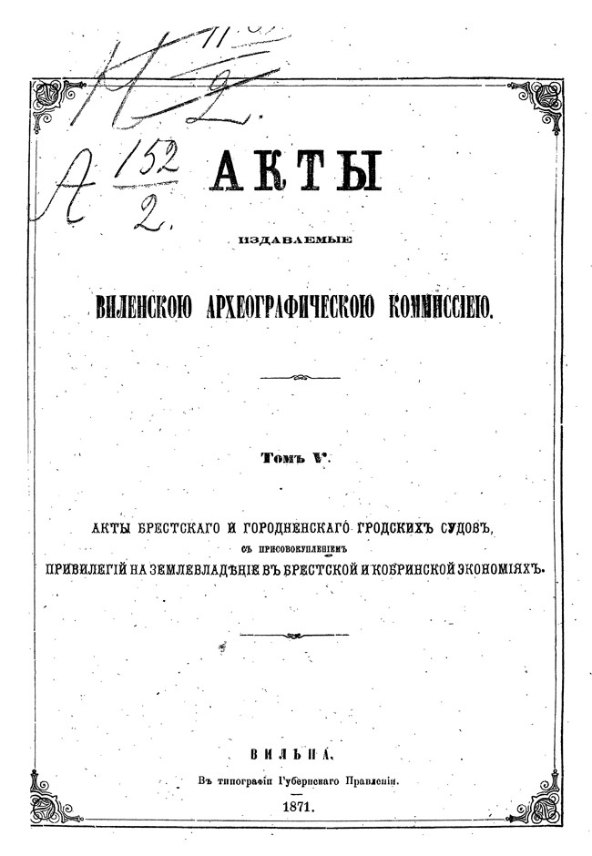 Том V. Акты Брестского и Городнянского городских судов