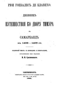 Дневник путешествия ко двору Тимура в Самарканд в 1403-1406 гг