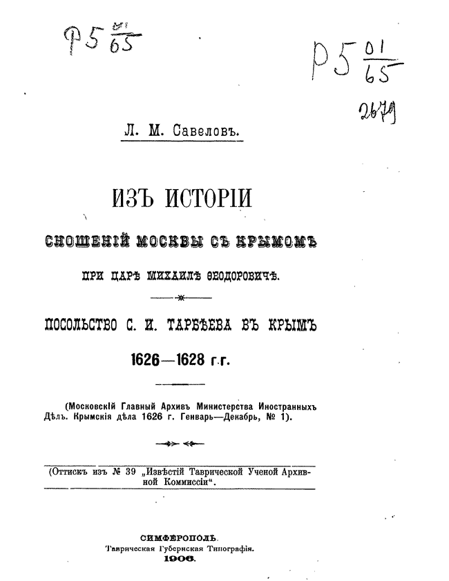 Из истории отношений Москвы с Крымом при царе Михаиле Федоровиче