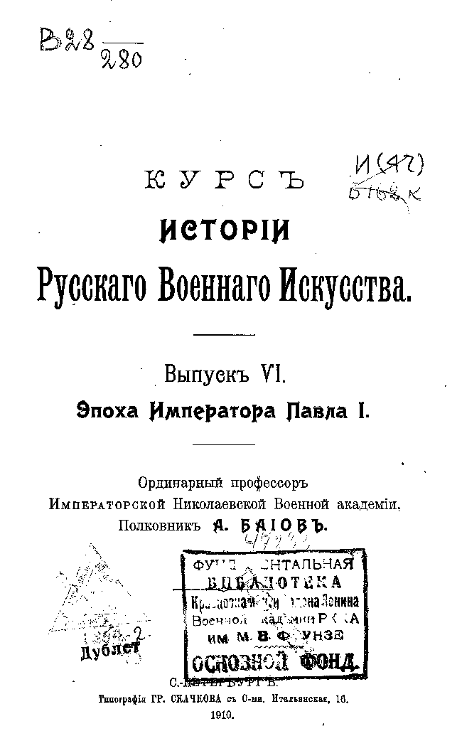 Курс истории русского военного искусства. Выпуск VI. Эпоха Императора Павла I.