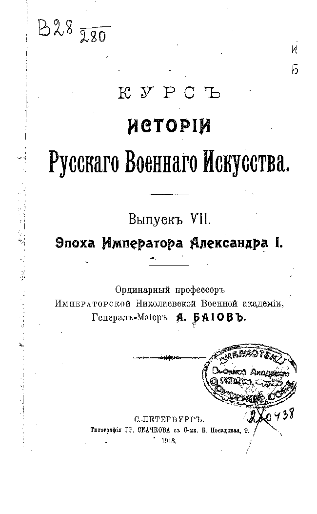 Курс истории русского военного искусства. Выпуск VII. Эпоха Императора Александра I.