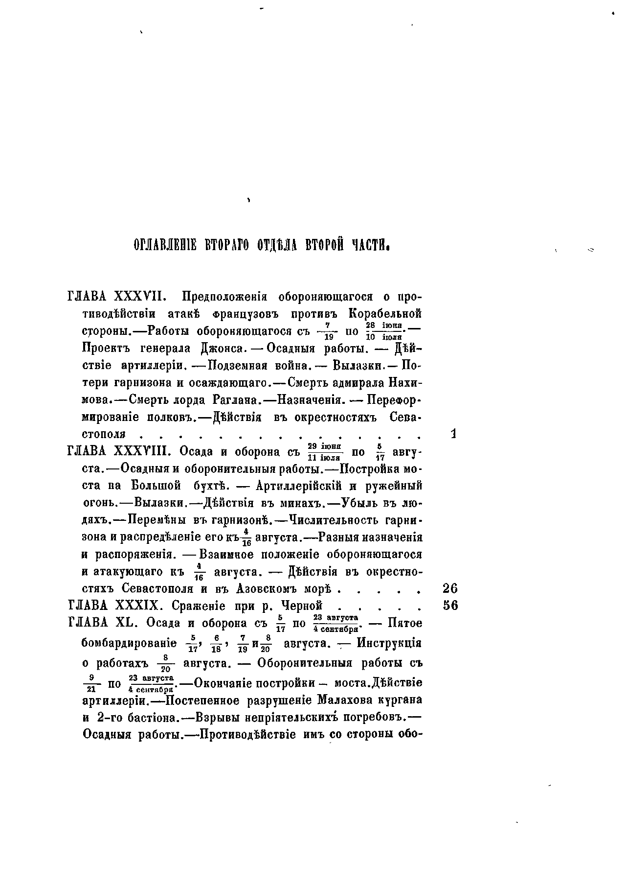 Полный обзор средств воюющих держав, полуострова Крыма, в особенности театра военных действий, изложенный по дням ход обороны и атаки, действия противников, а также распоряжения относительно убыли и усиления крымской армии, продовольствия войск и попечения больных и раненных, планы и чертежи.
