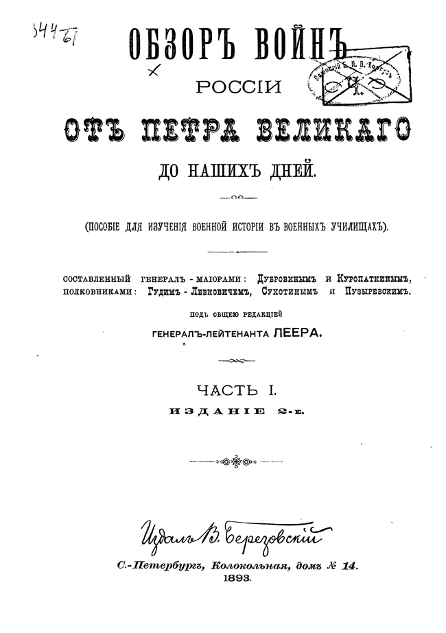 Книга составлена под редакцией Леера Генриха Антоновича (1829-1904) - генерал-лейтенанта, военного писателя