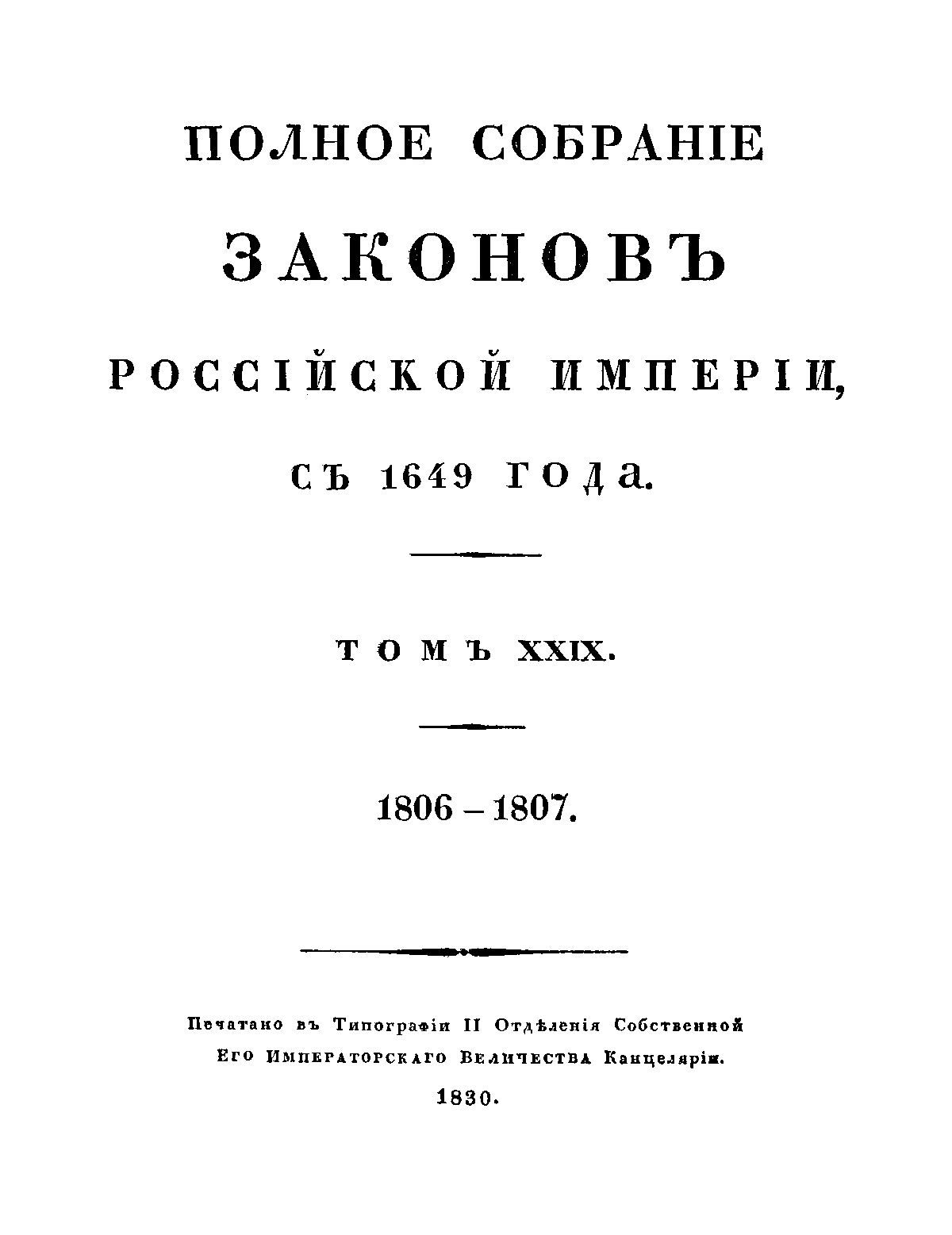 Полное собрание законов Российской Империи. Собрание Первое. Том XXIX