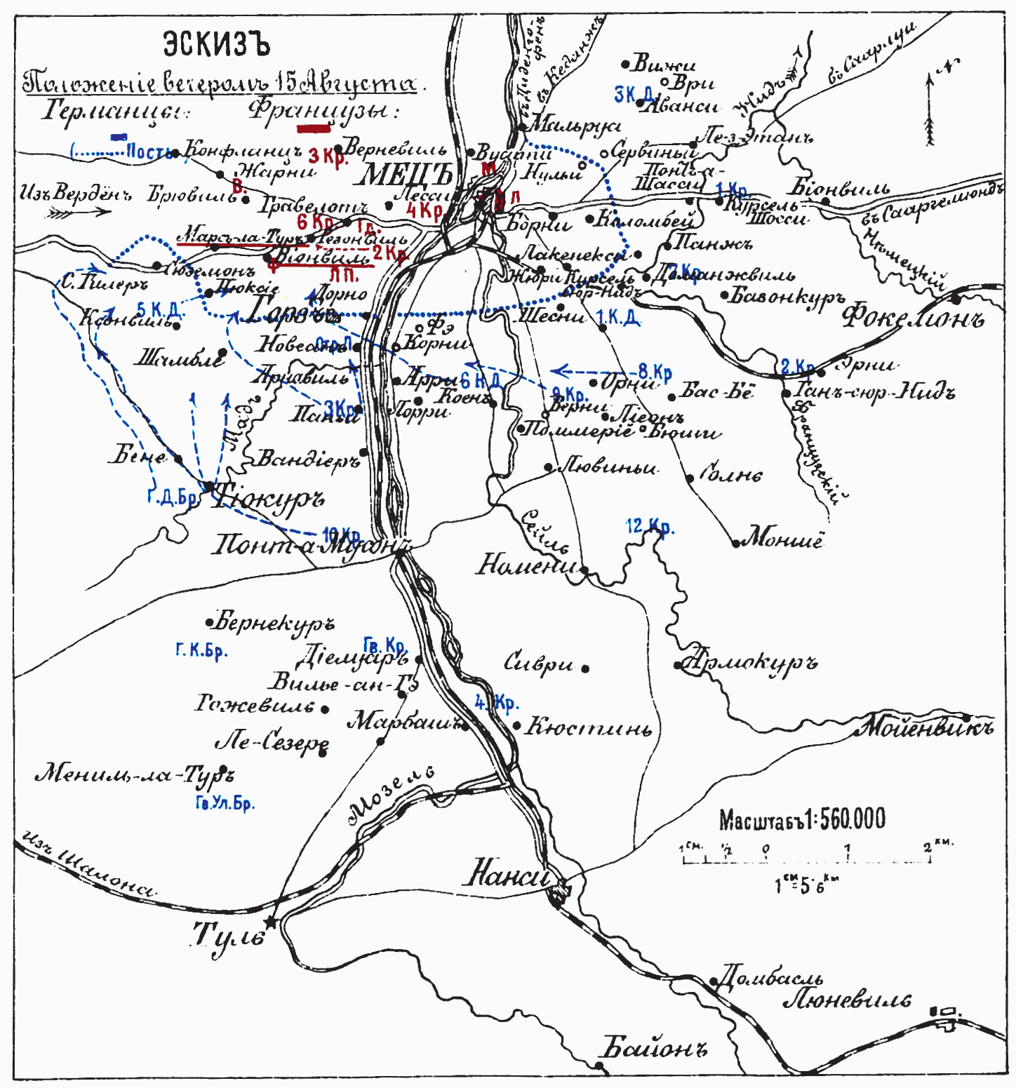 Сражение при Вионвиль-Марс-ла-Тур 16 августа 1870 года. Эскиз. Положение вечером 15 августа