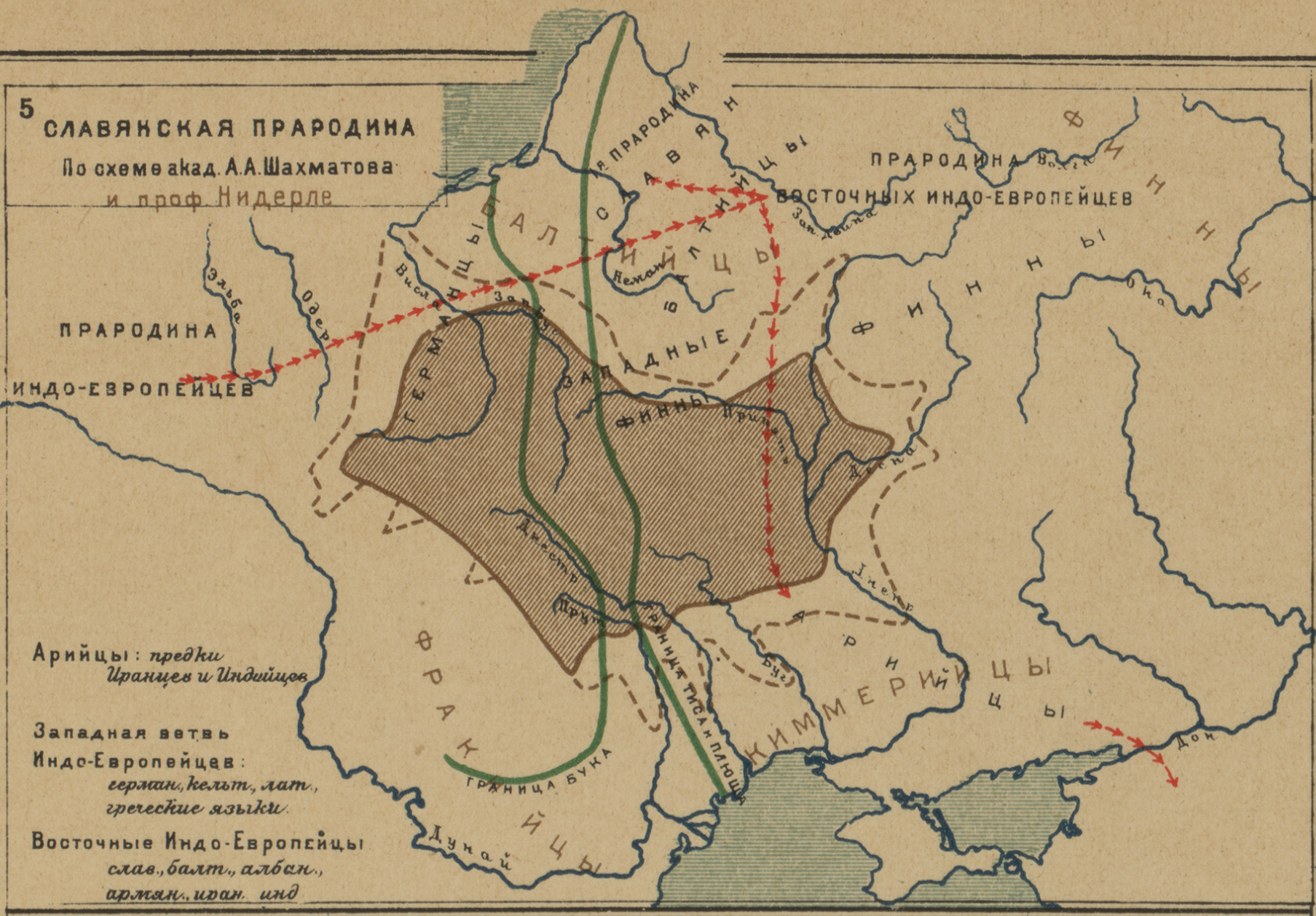Славянская прародина по схеме акад. А.А. Шахматова и проф. Нидерле