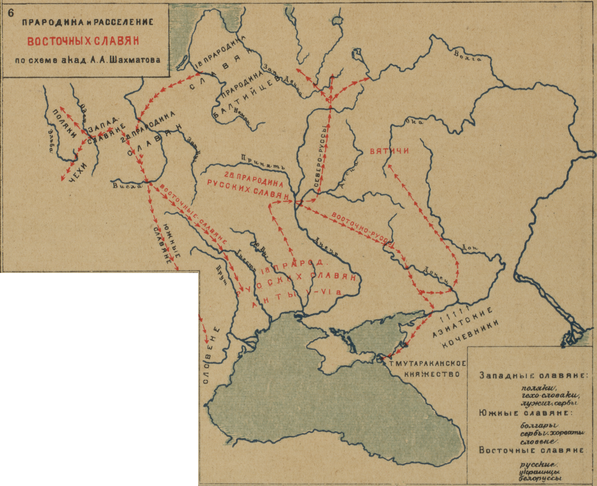 Прародина и расселение восточных славян по схеме акад. А.А, Шахматова