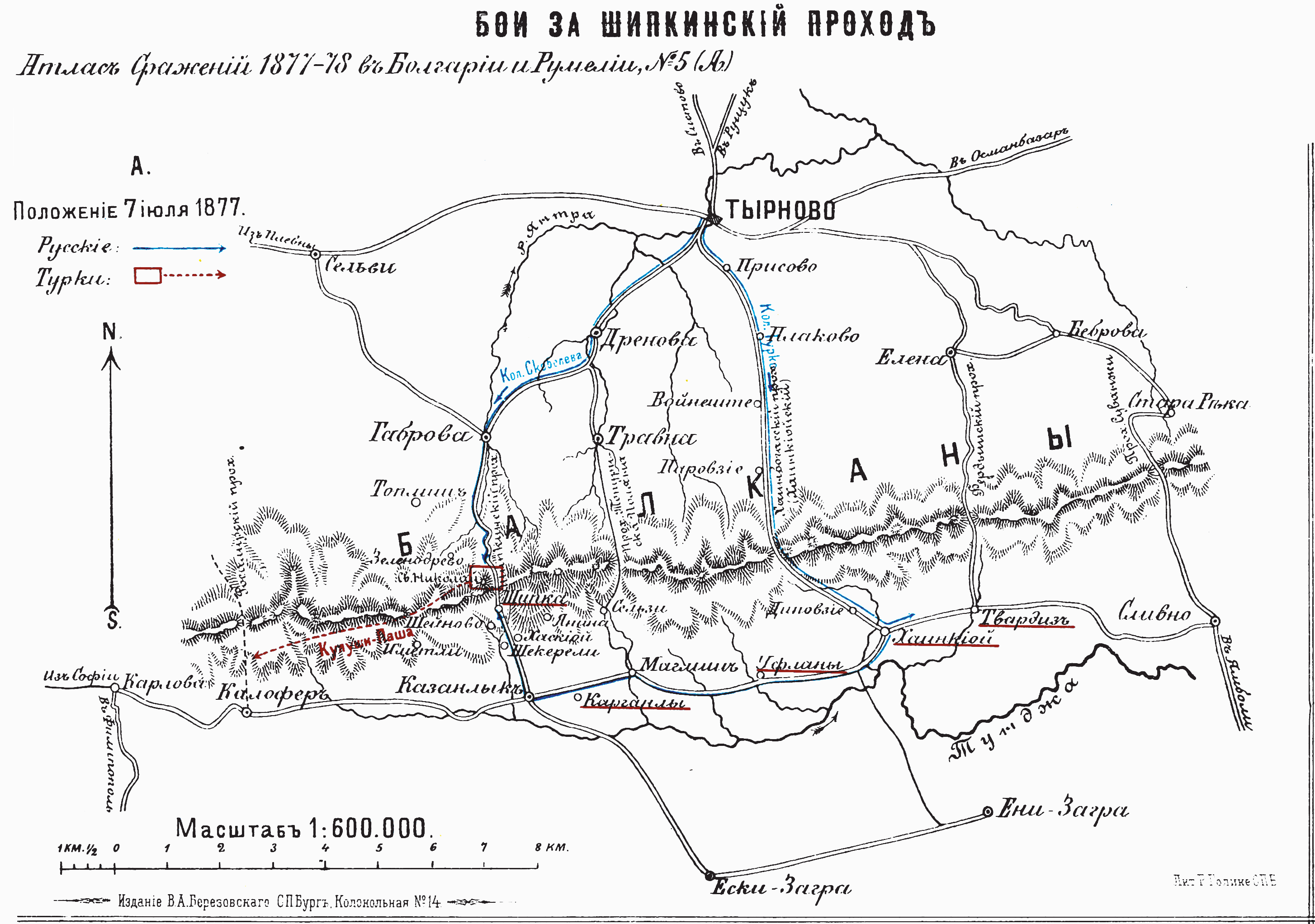 Бои за Шипкинский проход с 5 июля по 28 декабря 1877. A. Положение 7 июля 1877